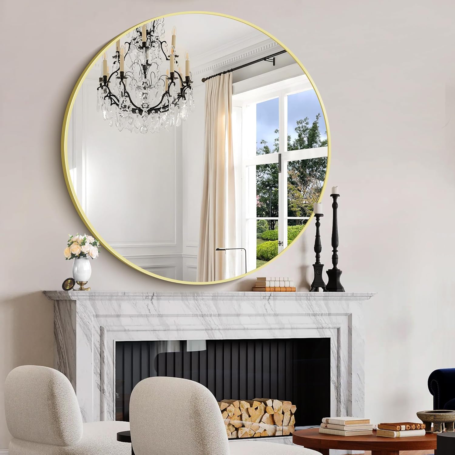 - LARGE ROUND MIRROR: CIVENO 48 inch round mirror with simple and modern design not only functional but also decorative, it's a wonderful wall art, making your room more artistic and bright, suitable for bathroom, entryway, living room, bedroom.