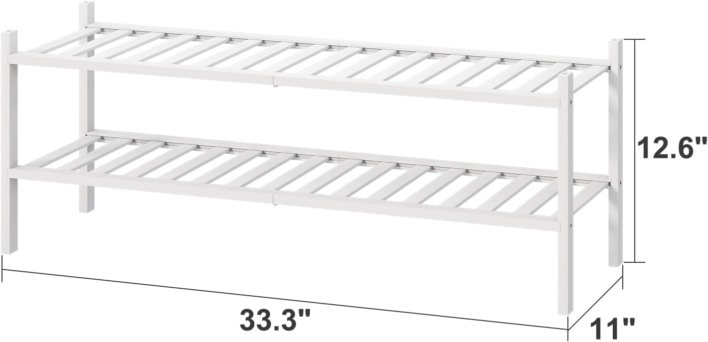 Long Shoe Rack for Entryway,Shoe Organizer for Hallway Closet, Bamboo Wood Shoe Racks for Indoor Outdoor (White, 2-Tier Long)