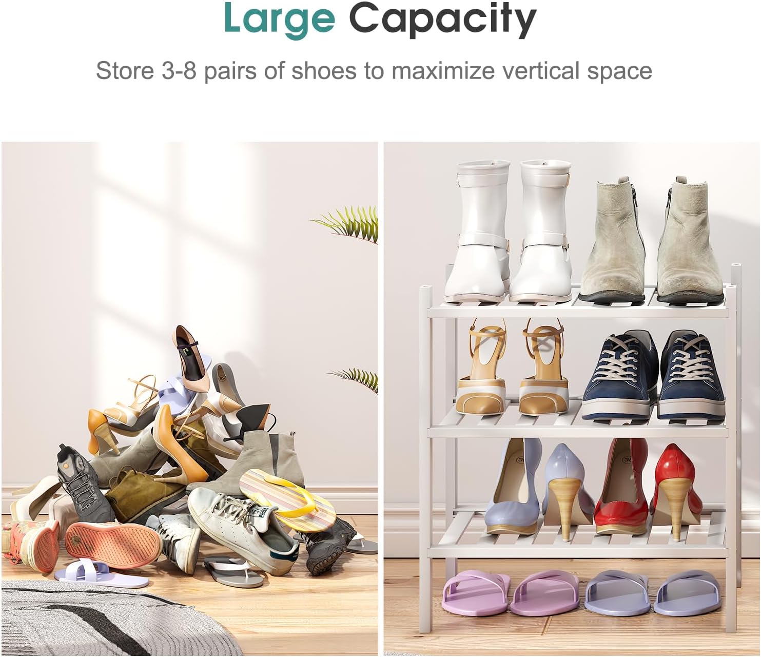 - Small Shoe Rack for 3-8 Pairs: 2 pairs of adult shoes can be placed on each layer