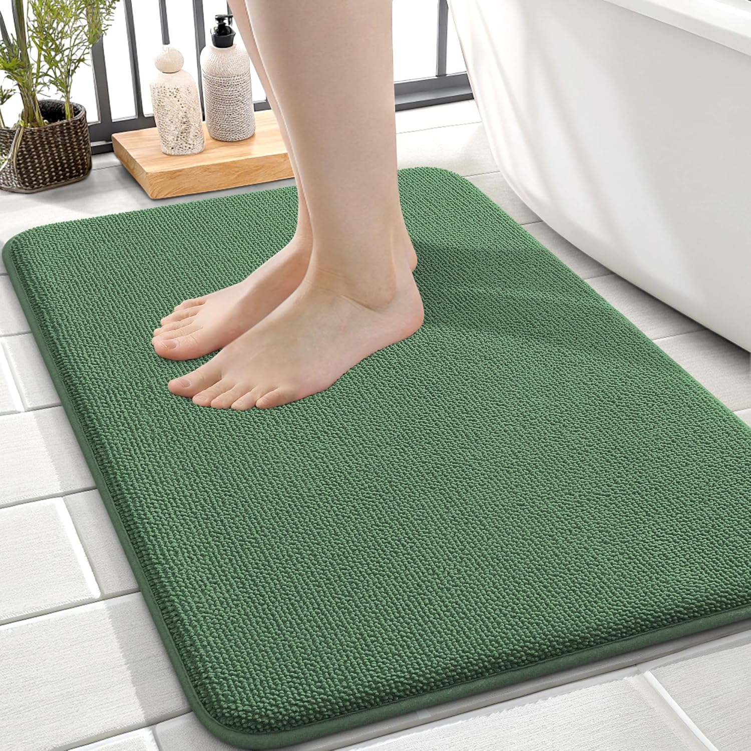 OLANLY Thick Memory Foam Bath Mat Rug 24x16, Extra Soft Absorbent Bathroom Rug, Quick Dry Bath Mats, Non-Slip, Machine Washable Carpet for Bathroom, Tub and Shower, Home Decor Accessories, Olive Green