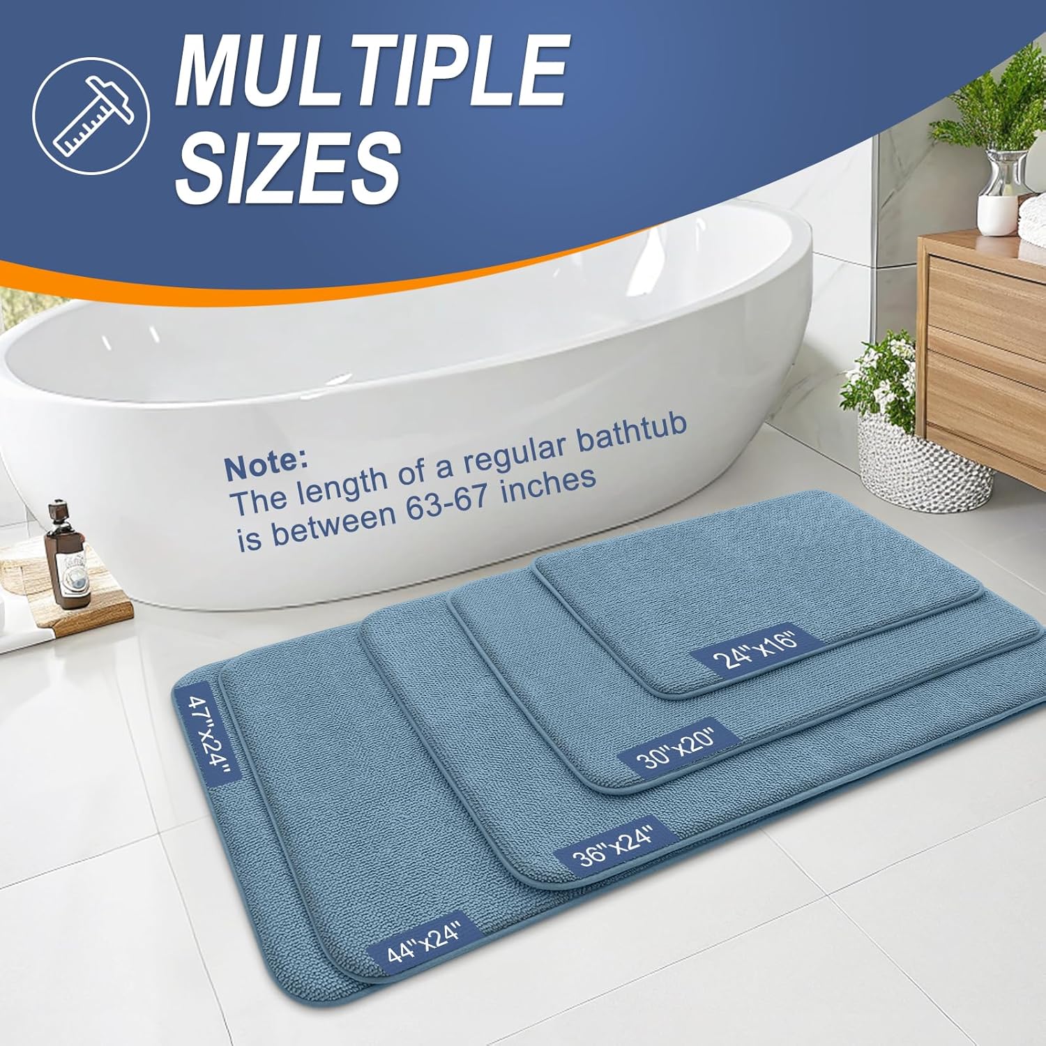 OLANLY Thick Memory Foam Bath Mat Rug 47x20, Extra Soft Absorbent Bathroom Rug, Quick Dry Bath Mats, Non-Slip, Machine Washable Carpet for Bathroom, Tub and Shower, Home Decor Accessories, Airy Blue