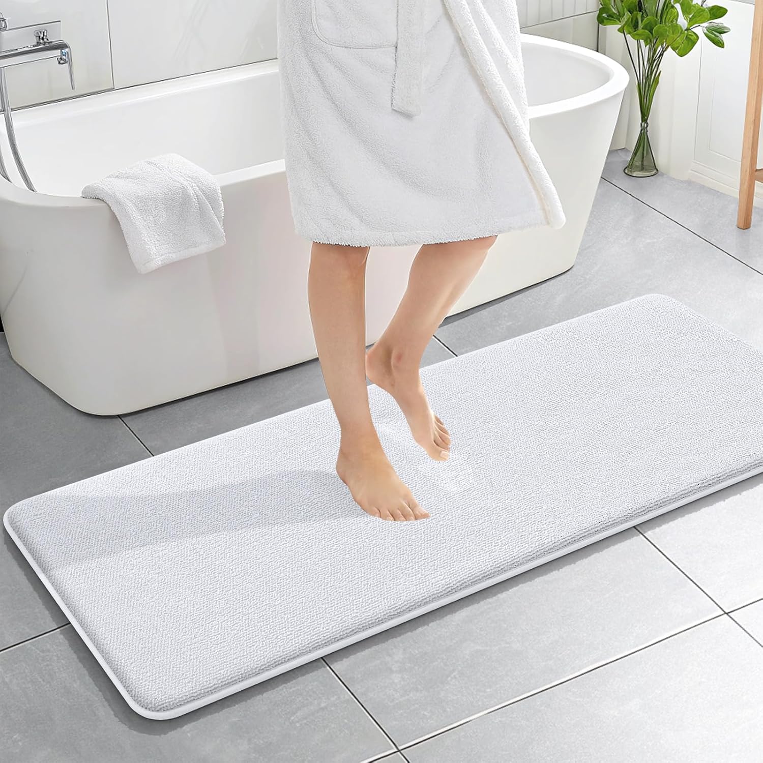 OLANLY Thick Memory Foam Bath Mat Rug 59x20, Extra Soft Absorbent Bathroom Rug, Quick Dry Bath Mats, Non-Slip, Machine Washable Carpet for Bathroom, Tub and Shower, Home Decor Accessories, White
