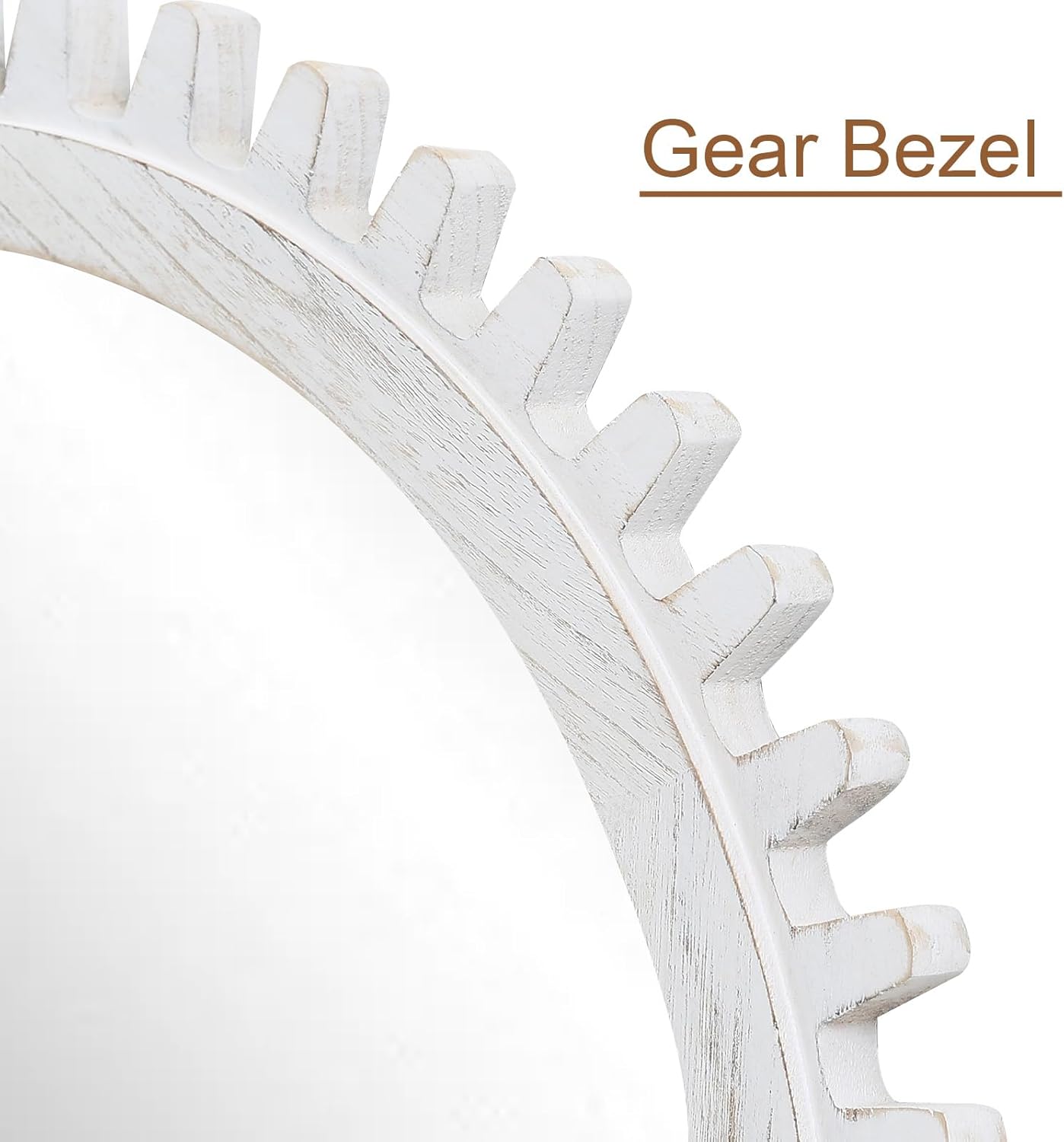 - Unique Decorative Accent Mirror: Crafted from solid wood, this industrial gear-inspired wall mirror brings a vintage, repurposed charm to any room. Its rustic elegance effortlessly complements various interior styles, adding character and a touch of sophistication to your home décor.