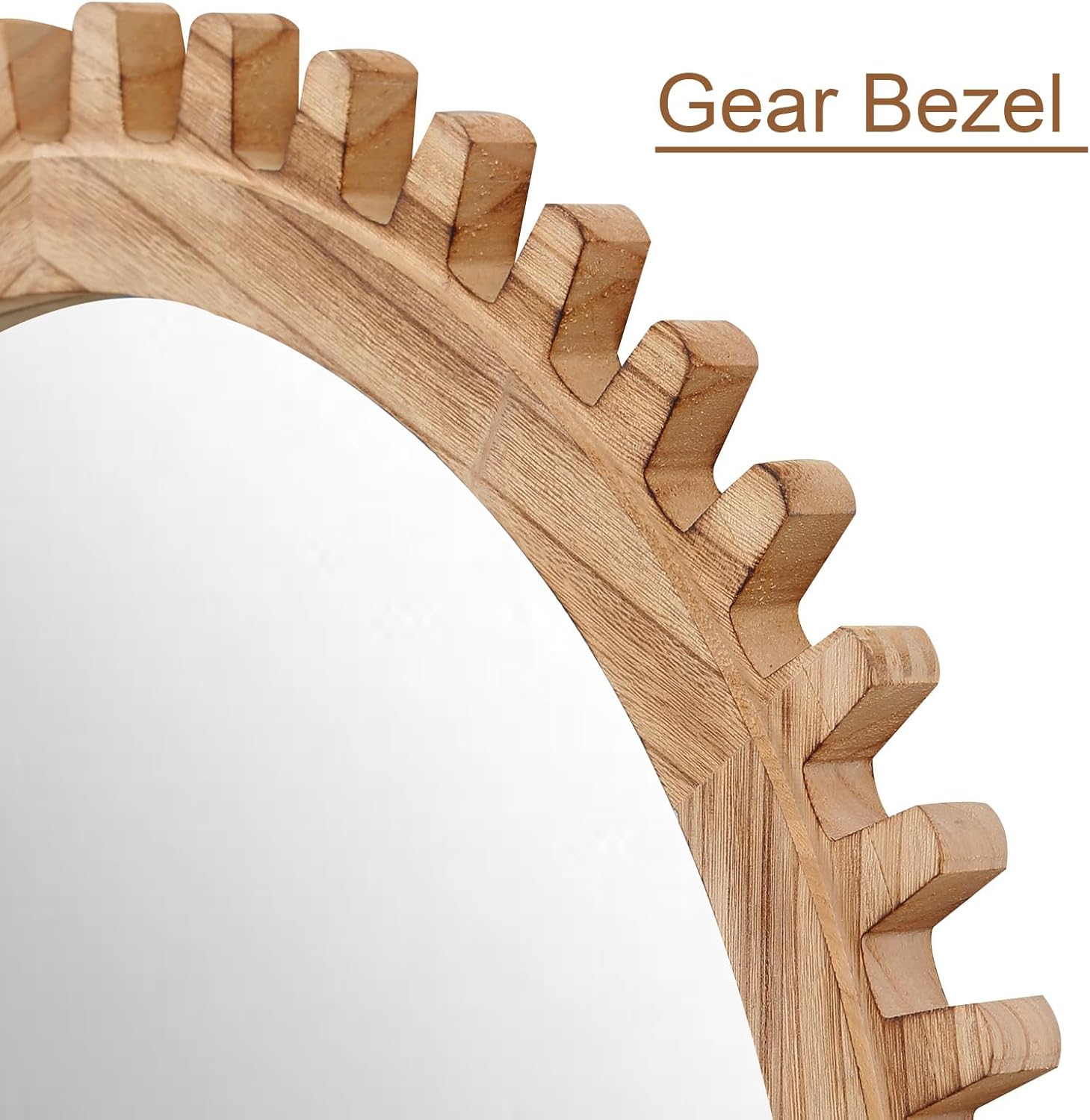 - Unique Decorative Accent Mirror: Crafted from solid wood, this industrial gear-inspired wall mirror brings a vintage, repurposed charm to any room. Its rustic elegance effortlessly complements various interior styles, adding character and a touch of sophistication to your home décor.