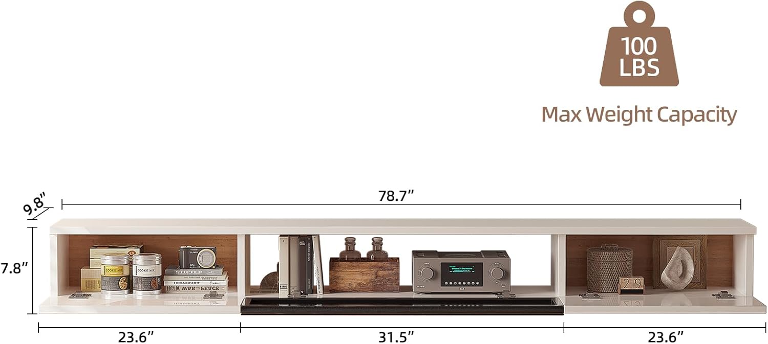 - Maximized Storage: With a versatile 3-door design, including one glass door, our tv floating shelf offers ample storage for all your media devices, gaming consoles, DVDs, and more. Keep your living area neat and organized with ease.
