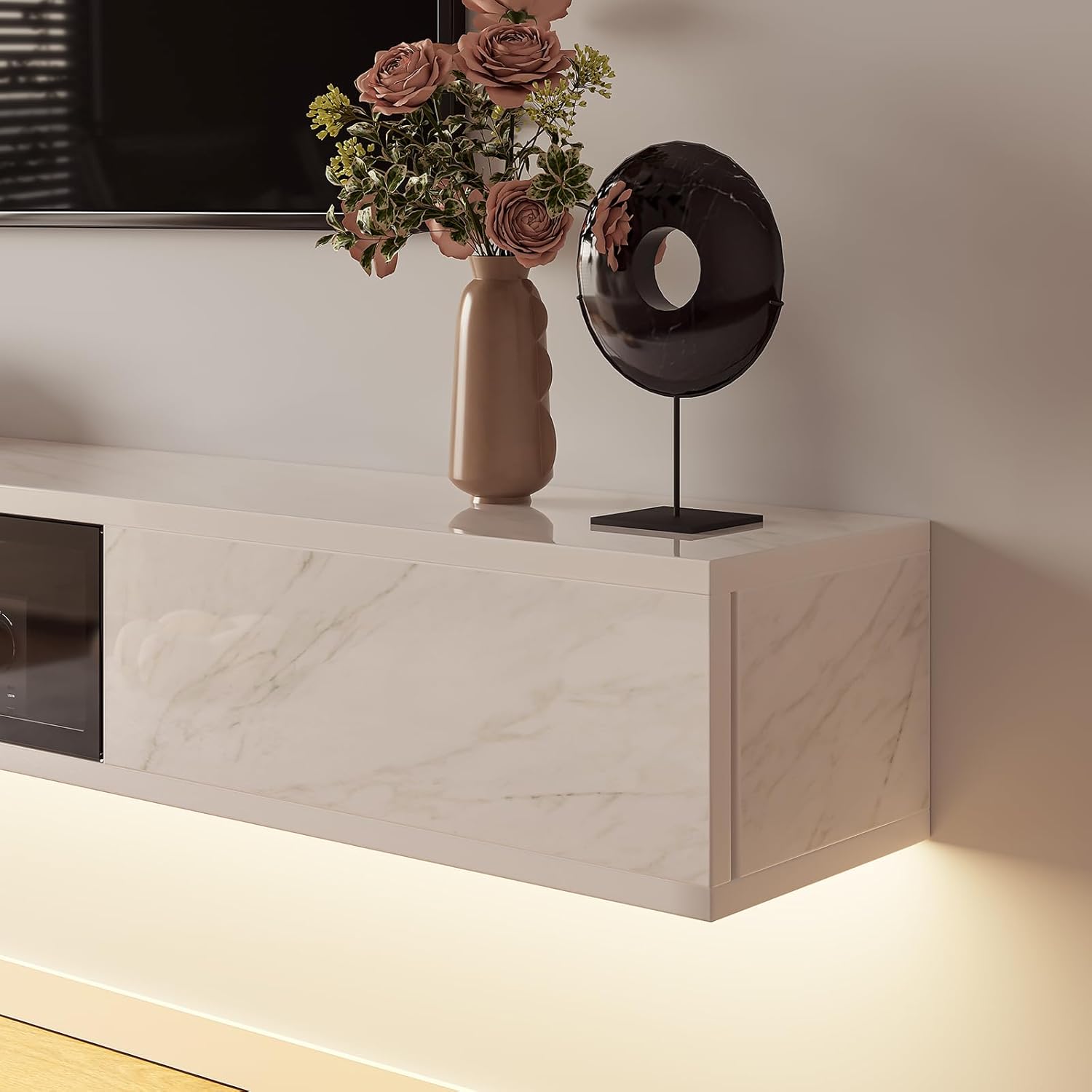 - Unmatched Quality: Our floating media console is constructed from premium laminated solid plywood, ensuring exceptional durability and longevity. The high gloss finish adds a touch of luxury and elegance, making it a standout piece in any room.