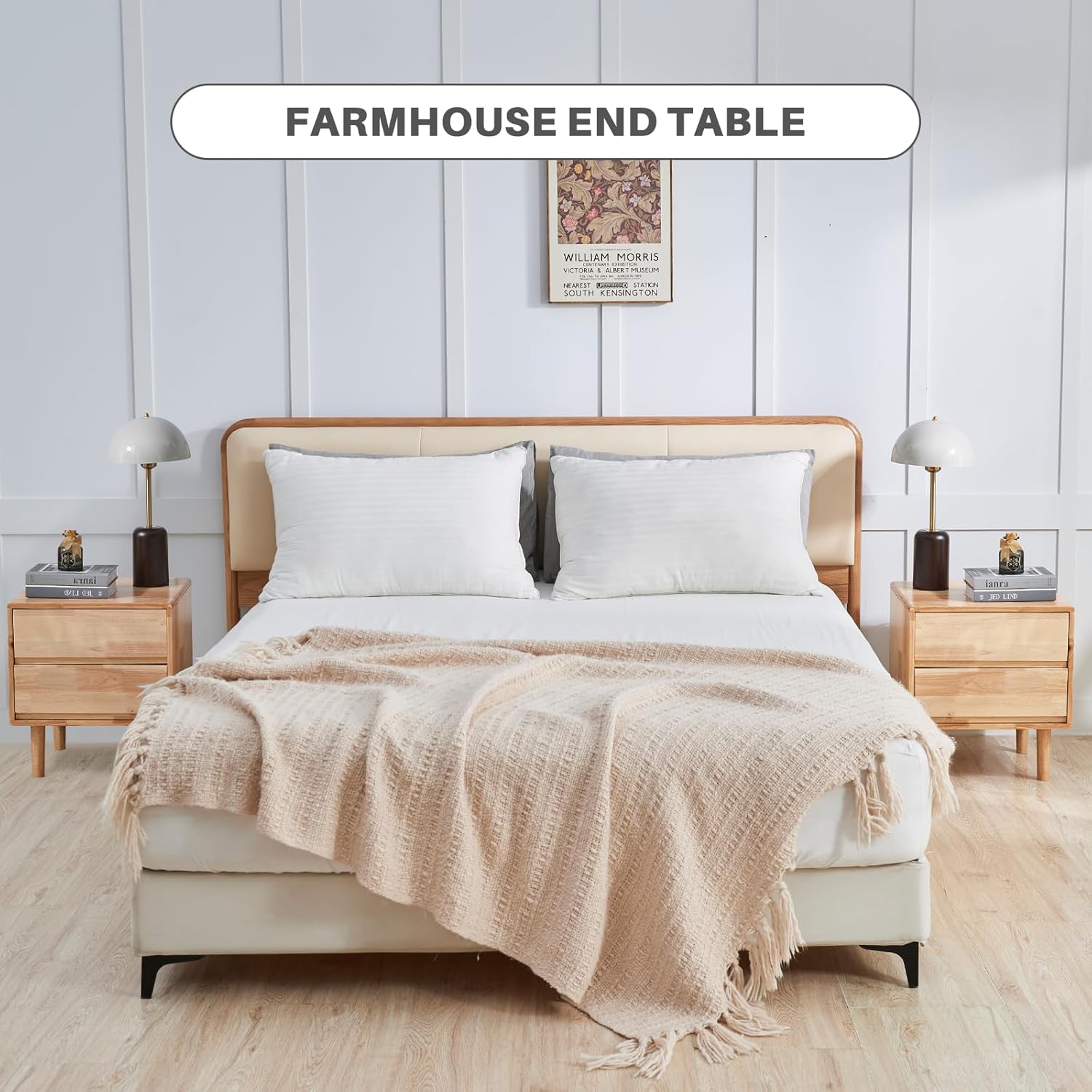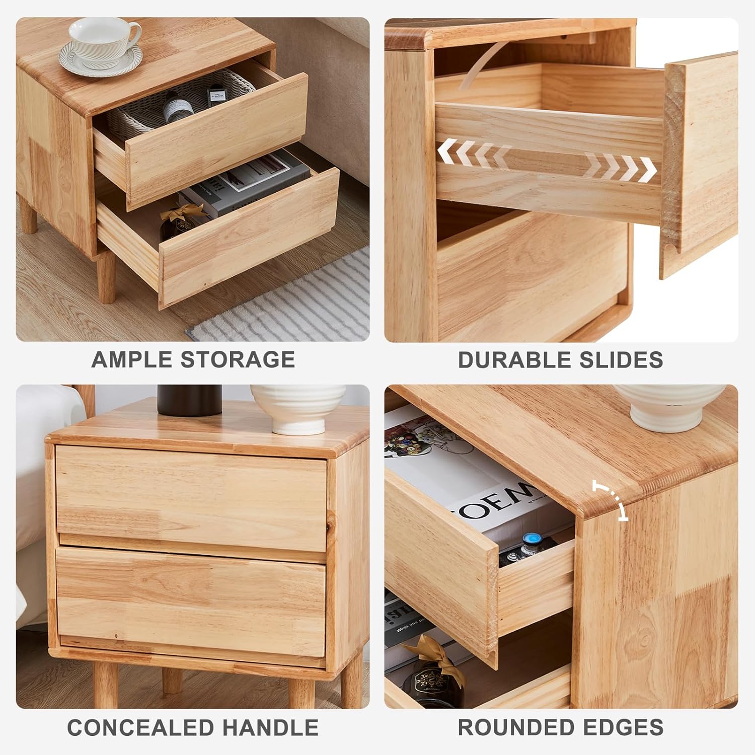 Uniclinens Nightstand with 2 Drawers Storage, 19" Modern Solid Rubberwood Bedside Table for Bedroom, Sofa Side Table End Tables Living Room, Natural