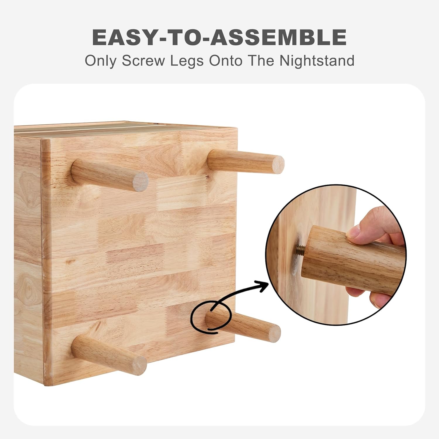 - 【High Quality Solid Wood Material】The nightstand is mainly built from premium solid rubberwood material, which has longer service life and resists damage, delivering exceptional stability and durability. Additionally, this material emits no harmful odors, creating a more pleasant environment.