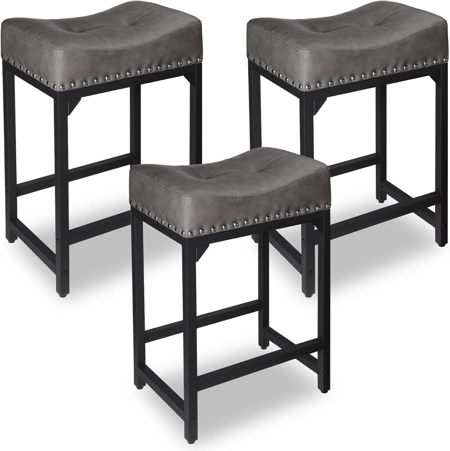 Counter Height Bar Stools Set of 3, Stools for Kitchen Island Set of 3, 24 Inch Counter Stool Saddle Backless Barstools for Kitchen Counter -Grey