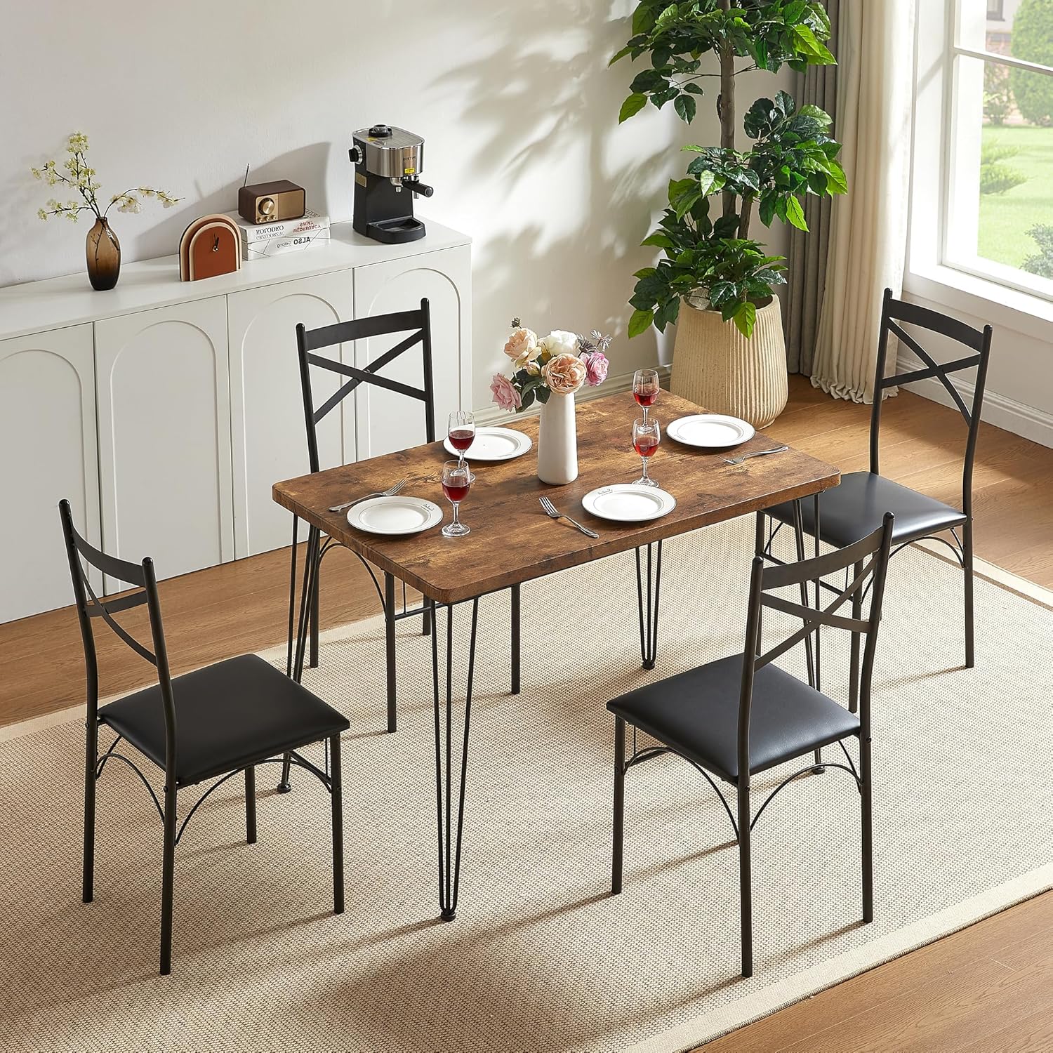 VECELO Kitchen Dining Room Table Set with 4 Chairs for Small Space, Apartment,Metal Steel Frame