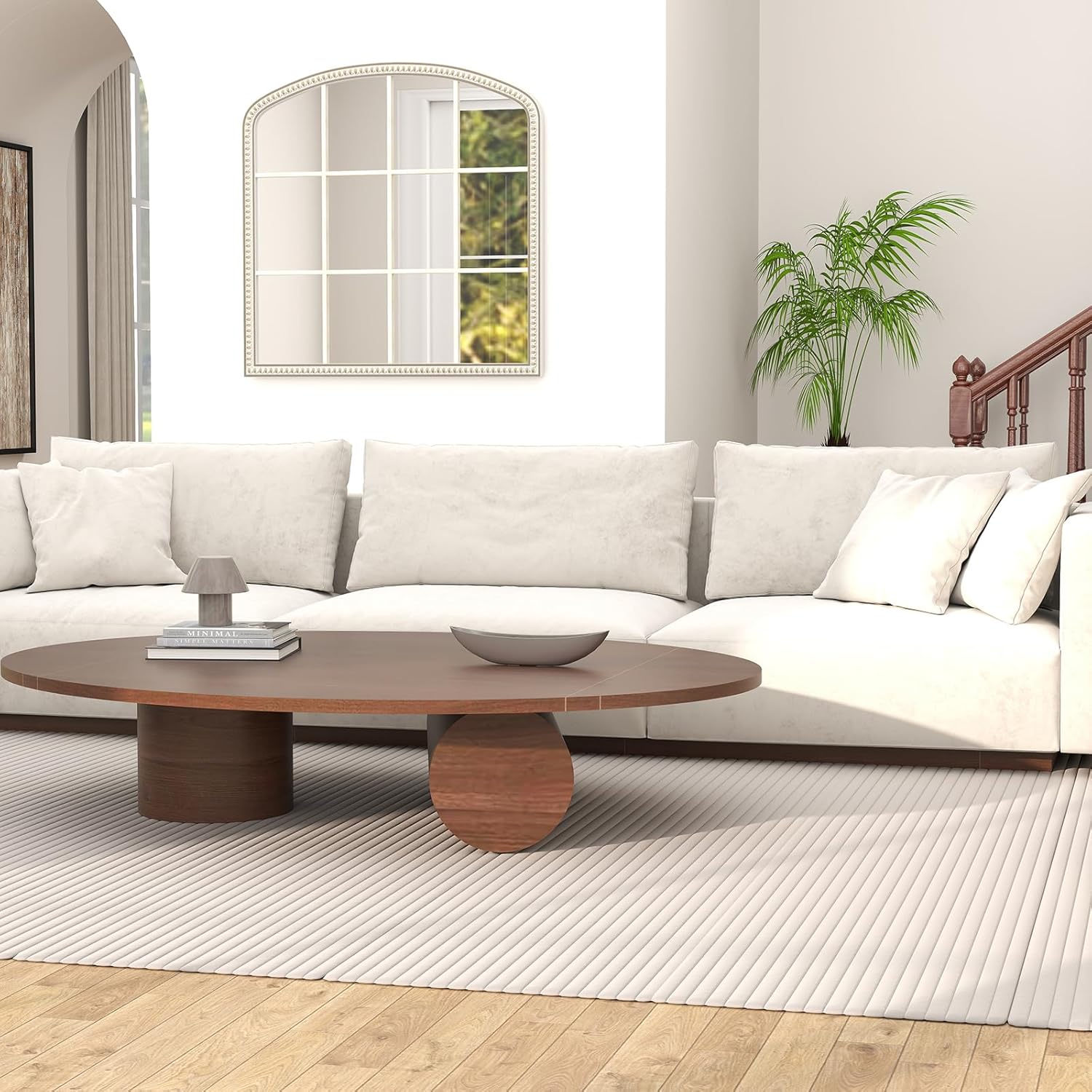 36''x36'' Wooden Wide Arched Mirrors for Wall with Window Girds, Large Farmhouse Decorative Mirror for Living Room, Entryway, Hallway, Fireplace, Bathroom