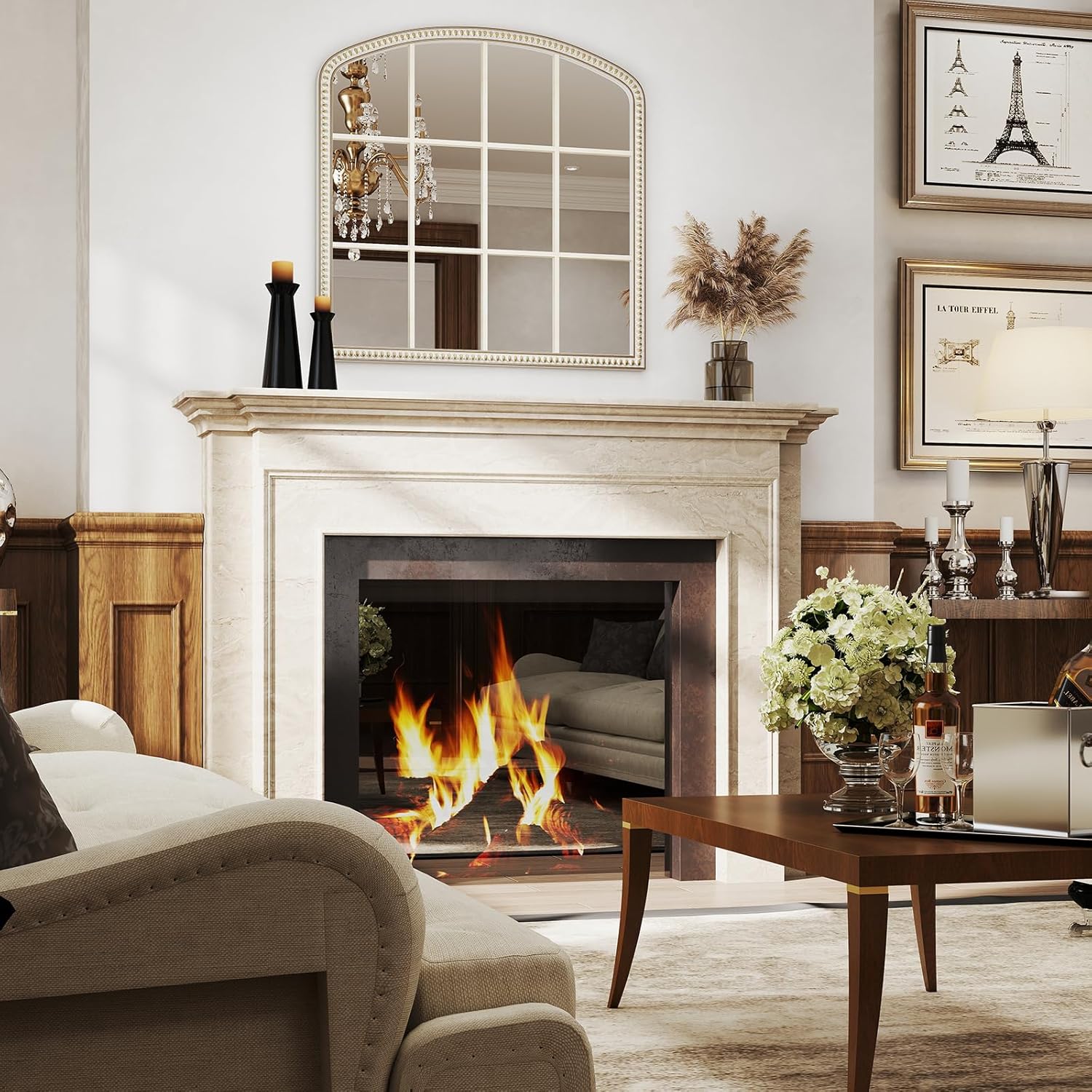 - Versatile Functionality: Ideal as a mantle mirror for fireplace, kitchen mirror, or dining room mirror wall decor, this piece elevates the style of any room, This arched window mirror is the perfect blend of classic design and practical functionality, making it an exceptional choice for those looking to enhance their home’s décor with a touch of farmhouse elegance