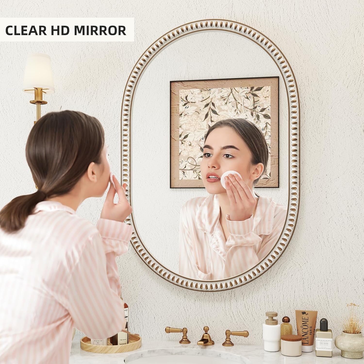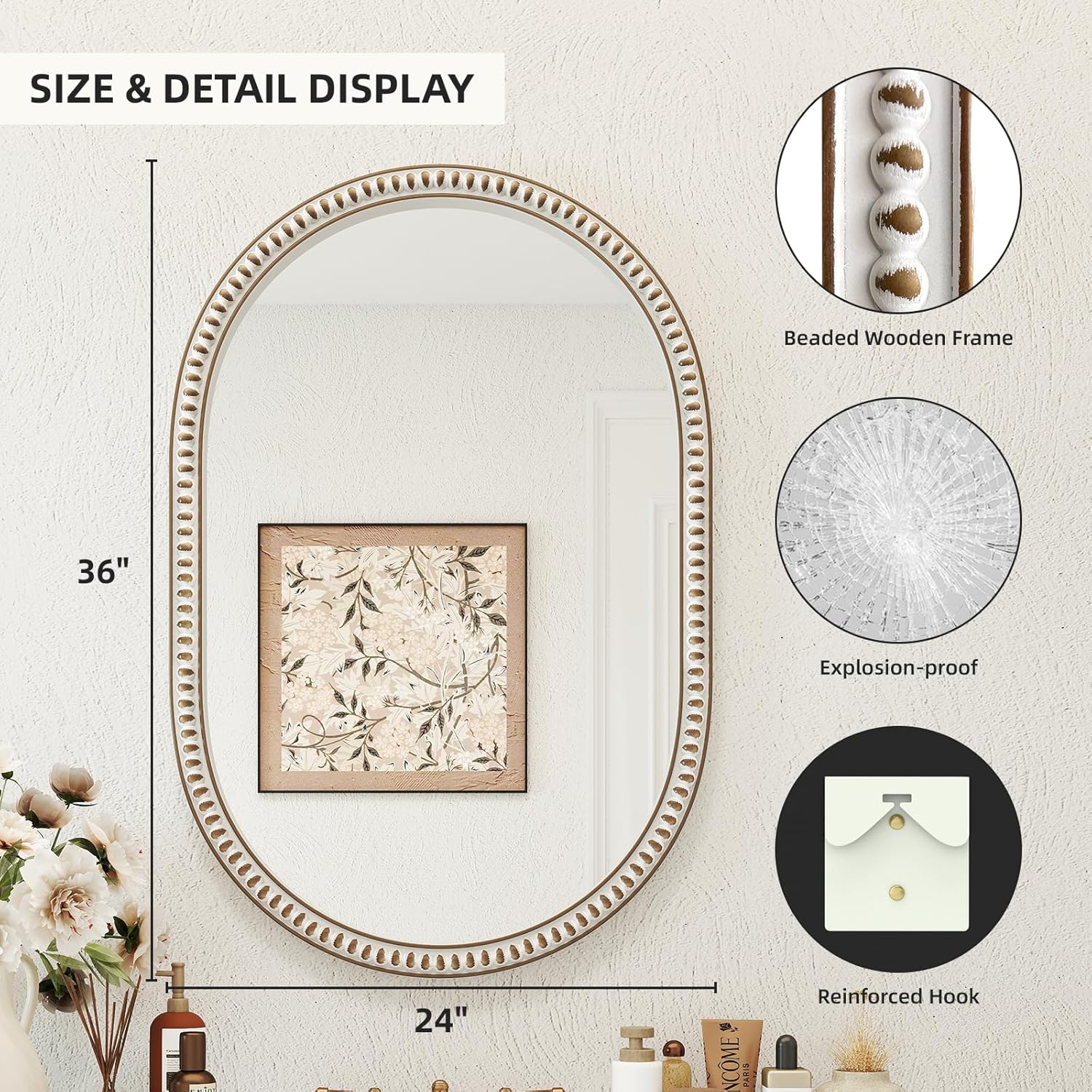 - Elegant Oval Design: The 24x36 inches bathroom mirror oval features a classic oval shape with a wooden frame and bead detailing, adding a touch of softness and sophistication to any décor style