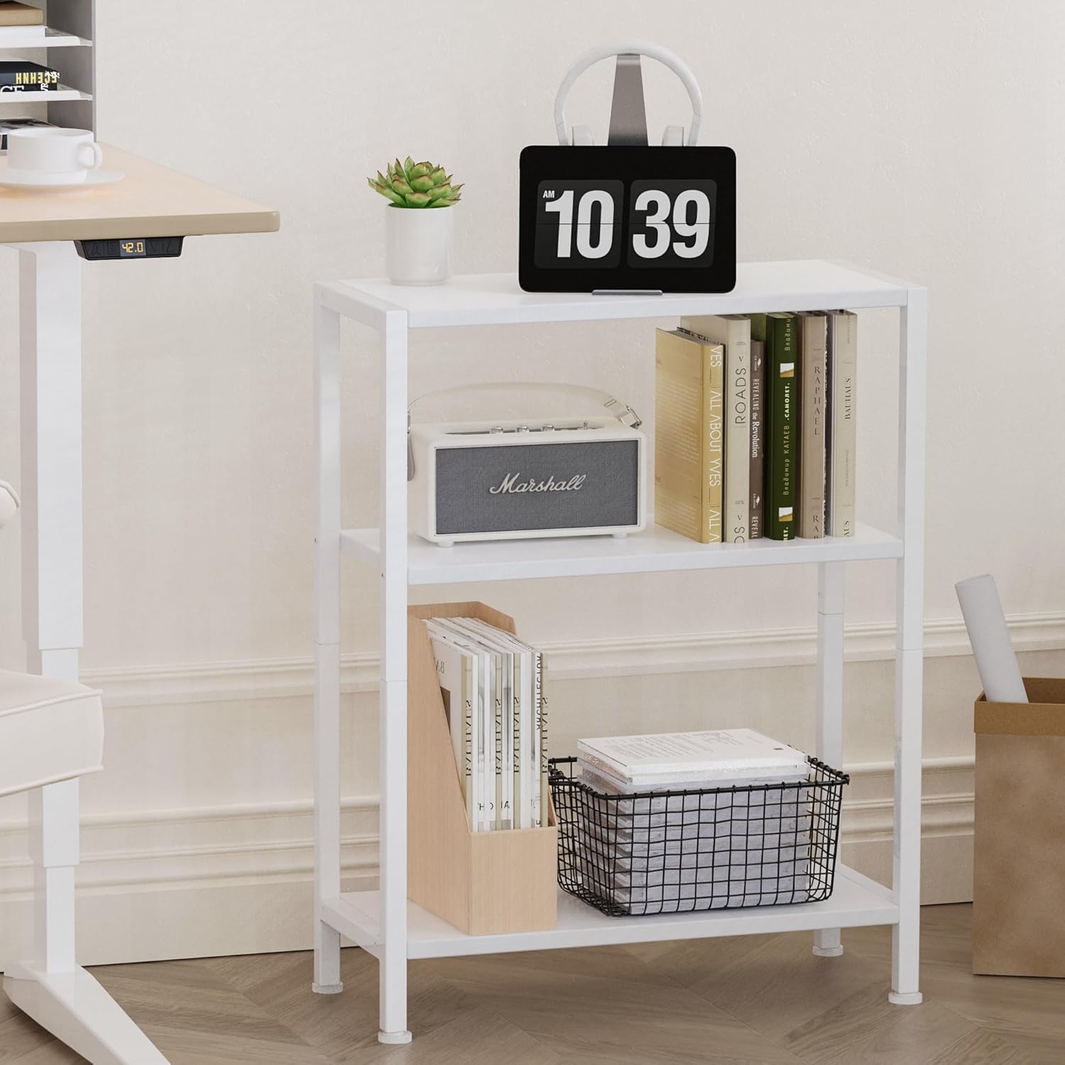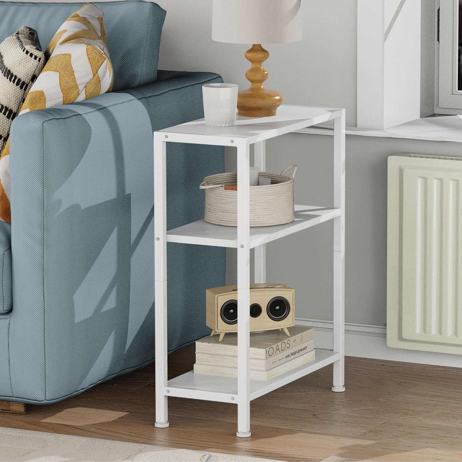 3-Tier Side Table, Small End Table, Sofa Side Table for Narrow Spaces, Slim End Table, Skinny Nightstand Table for Living Room Bedroom Office, White