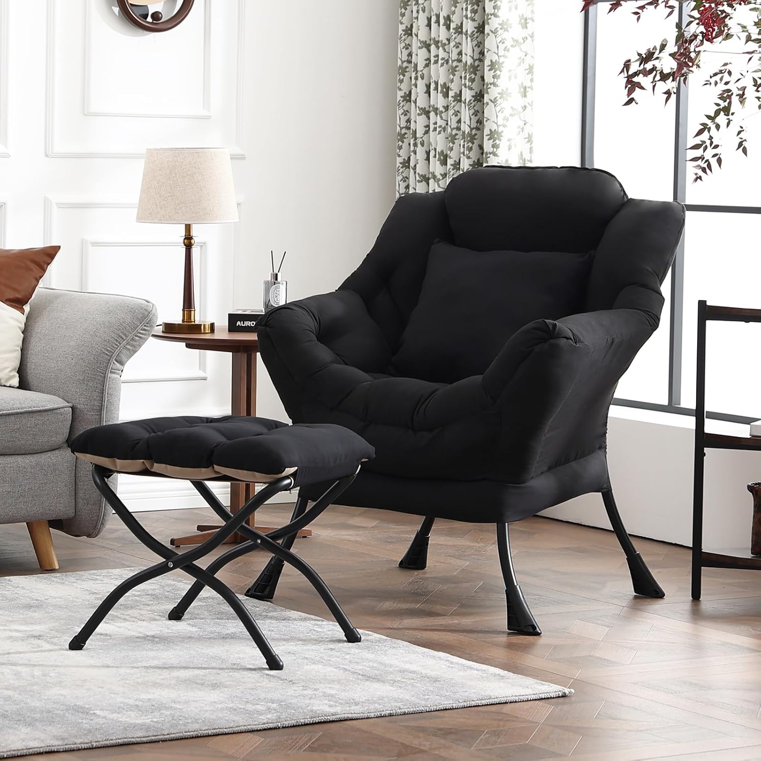 - 【EASY ASSEMBLY】Our lazy chair with ottoman offers a experience, thanks to this comfy chair’s user-friendly design. With clear, illustrated instructions and no need for extra tools, setting up your relaxation easy.