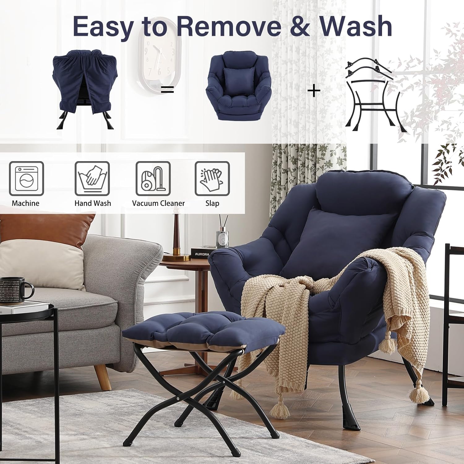 - 【EASY ASSEMBLY】Our lazy chair with ottoman offers a experience, thanks to this comfy chair’s user-friendly design. With clear, illustrated instructions and no need for extra tools, setting up your relaxation easy.