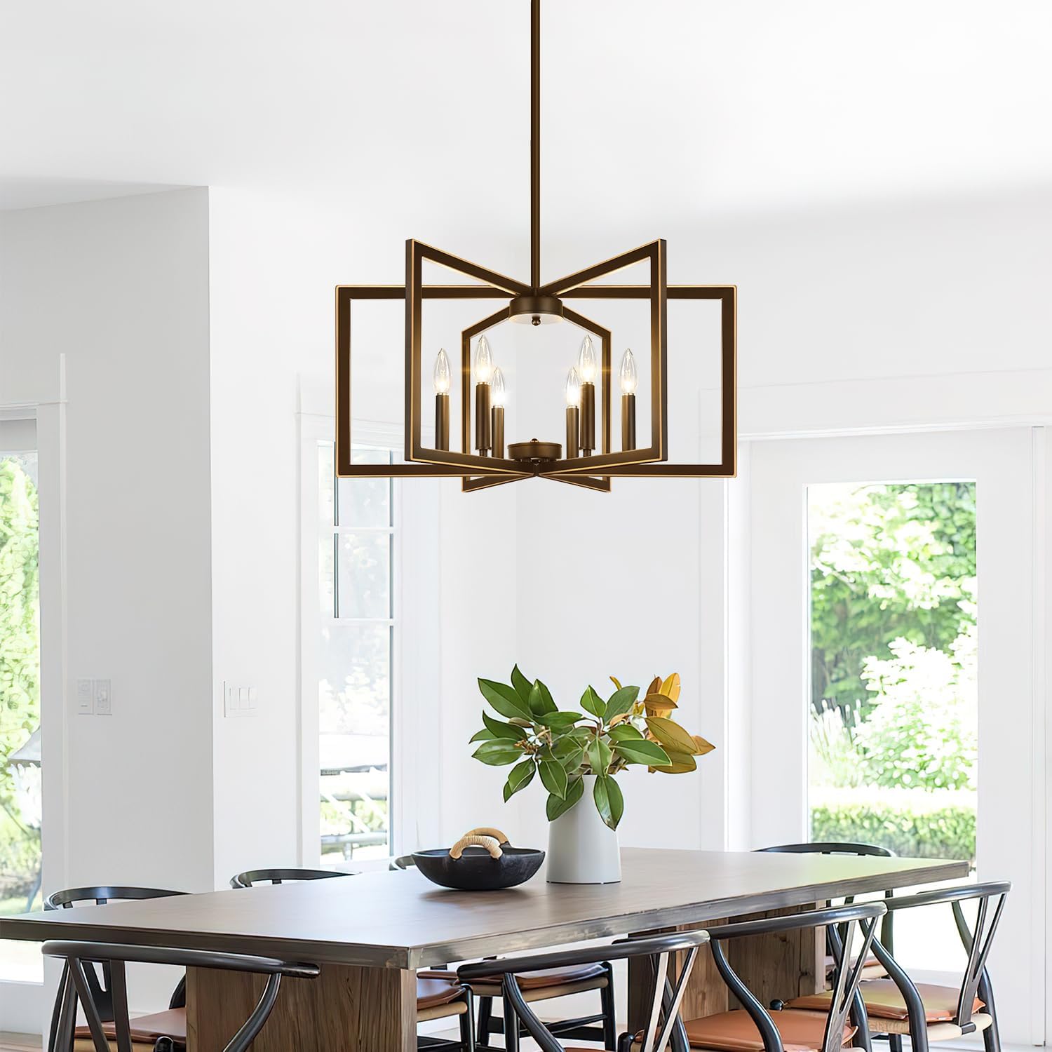 25" Modern Brown Chandelier for Dining Room (6-Light, 25-Inch), Geometric Brown Dining Room Light Fixture Over Table, Industrial Metal Hanging Pendant Lights for Kitchen Island, Entryway, Foyer