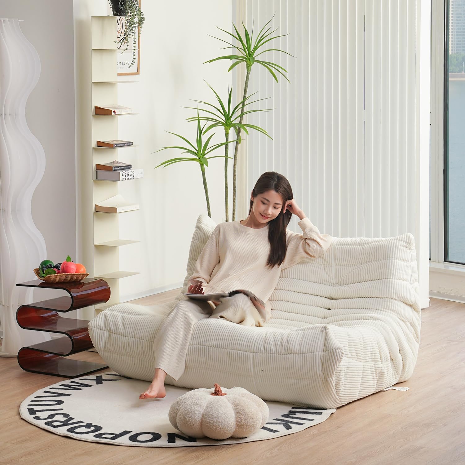 N&V Fireside Loveseat, Mid Century Armless Twin Size Floor Sofa, Soft Premium Corduroy Floor Lounge Chair, Foam Sofa Accent Chair for Living Room Bedroom and Office (Tangerine)