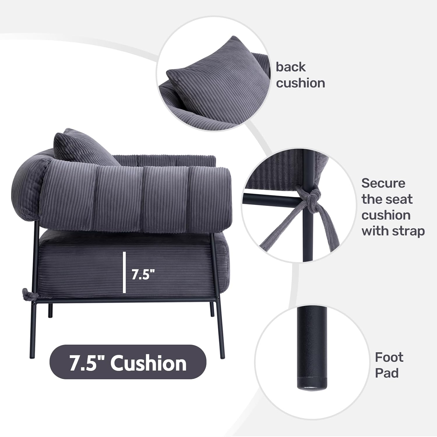 HollyHOME Modern Velvet Accent Chair, Upholstered Comfy Reading Chair, Fabric Large Lazy Arm Chair with Soft Cushion, Metal Frame Lounge Sofa Chair for Living Room, Bedroom, Balcony,Dark Grey