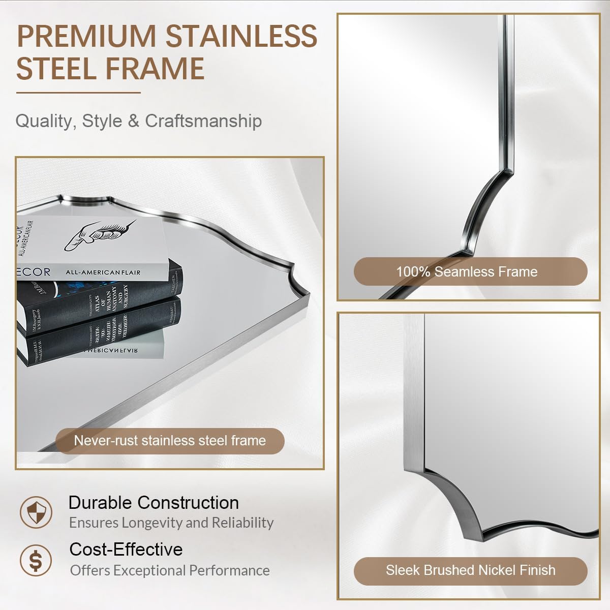 ANDY STAR Brushed Nickel Bathroom Mirror, 28x36 Inch Asymmetrical Wall Mirror, Modern Rectangle Mirror with Unique Wavy Design Ideal for Home Decor, Premium Stainless Steel Metal