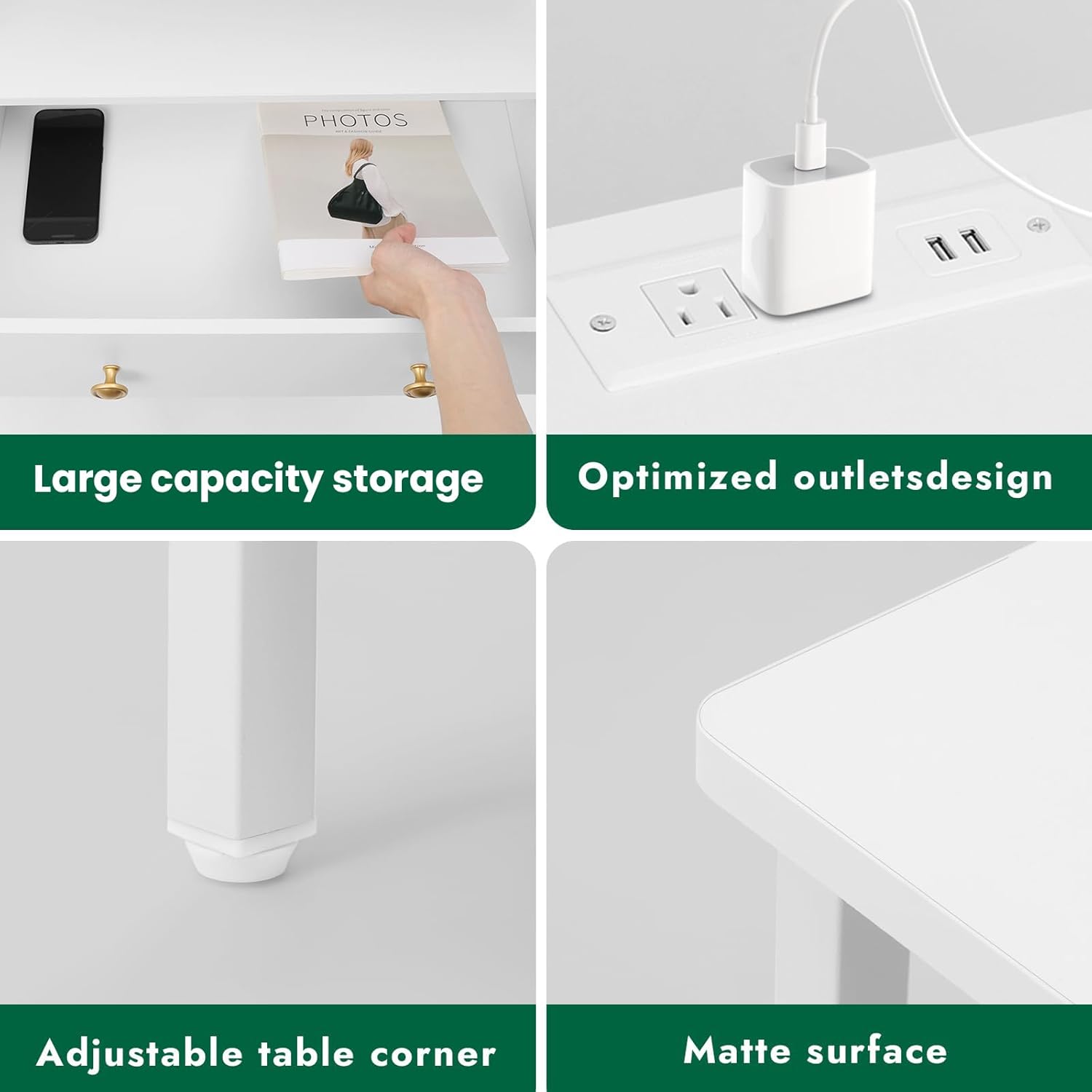 - 【Charging is a breeze! 】The large nightstand is equipped with 2 AC outlets and 2 USB ports and a 4.9-foot power cord. You can easily connect and charge electronic devices without additional extension cords or looking for available sockets. It provides a convenient charging place for your mobile phone, watch, table lamp, Bluetooth headset, and laptop, everything is within reach