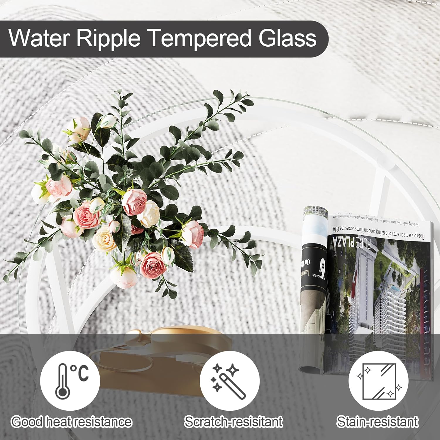 aboxoo White Nesting Glass Table Set of 2, Small Glass Round Nesting Tables for Living Room Bedroom, Accent Tea Table with Metal Frame Modern Industrial Simple