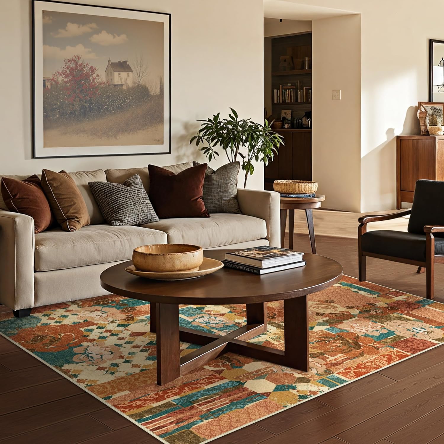 - Soft & Well Designed: This area rug captures the opulence of vintage design with intricate floral patterns in harmonious shades. Made from high-quality low pile soft fibers, it provids a certain degree of cushioning for the feet. This vintage rug skillfully captures a blend of classic, modern, boho, faded, delivering not just striking design but also a sumptuously soft texture. The pattern and color vividly match the images, with consistent coloring throughout the entire piece.