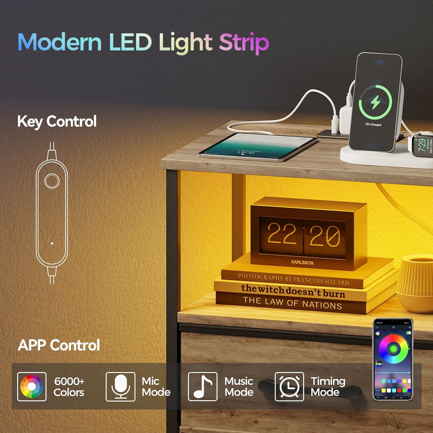 - ใ๐๐จ๐ฅ๐จ๐ซ๐๐ฎ๐ฅ & ๐๐ฆ๐๐ซ๐ญ ๐๐๐ ๐๐ข๐ ๐ก๐ญ ๐๐ญ๐ซ๐ข๐ฉใThe TRIFEBLE bedside table features a multicolored LED light strip with more than 20 colors and 22 dynamic modes. By manual key or phone app, you can freely choose your favorite color, brightness level and flashing modes to create the perfect atmosphere.