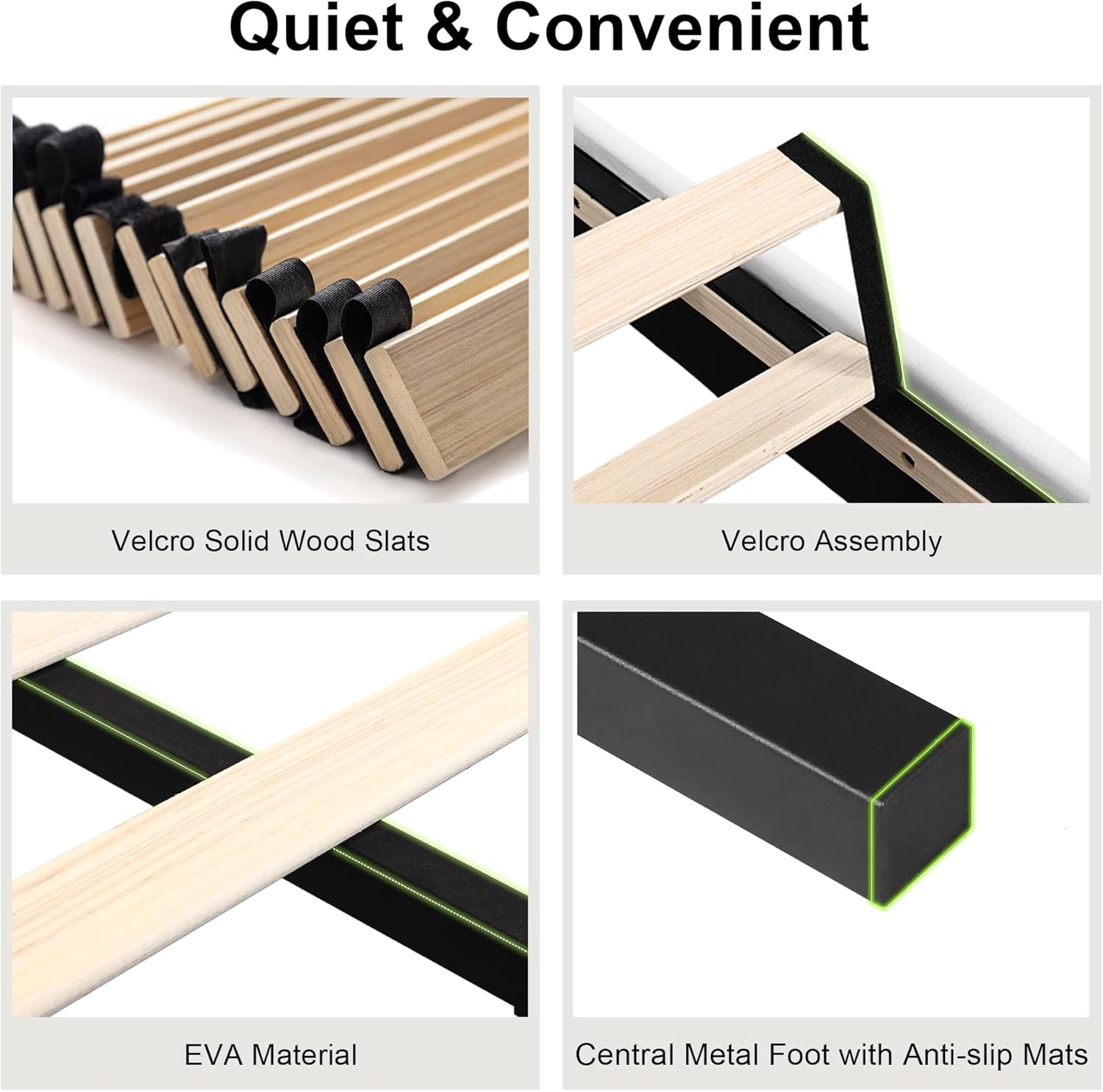 - Carefully Conceived Design: Embedded no-sliding design keeps the mattress in place all night. EVA Foam is attached between the slats and frame, and central-metal legs add the foot pads, enjoy a noiseless night