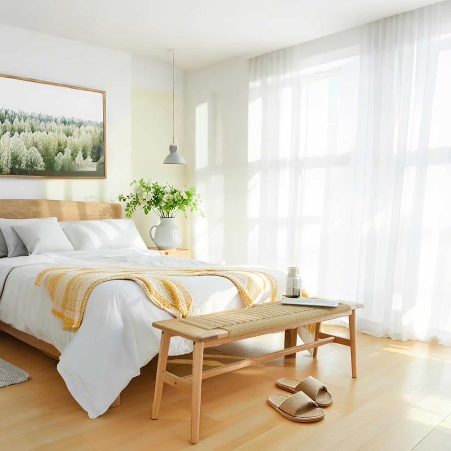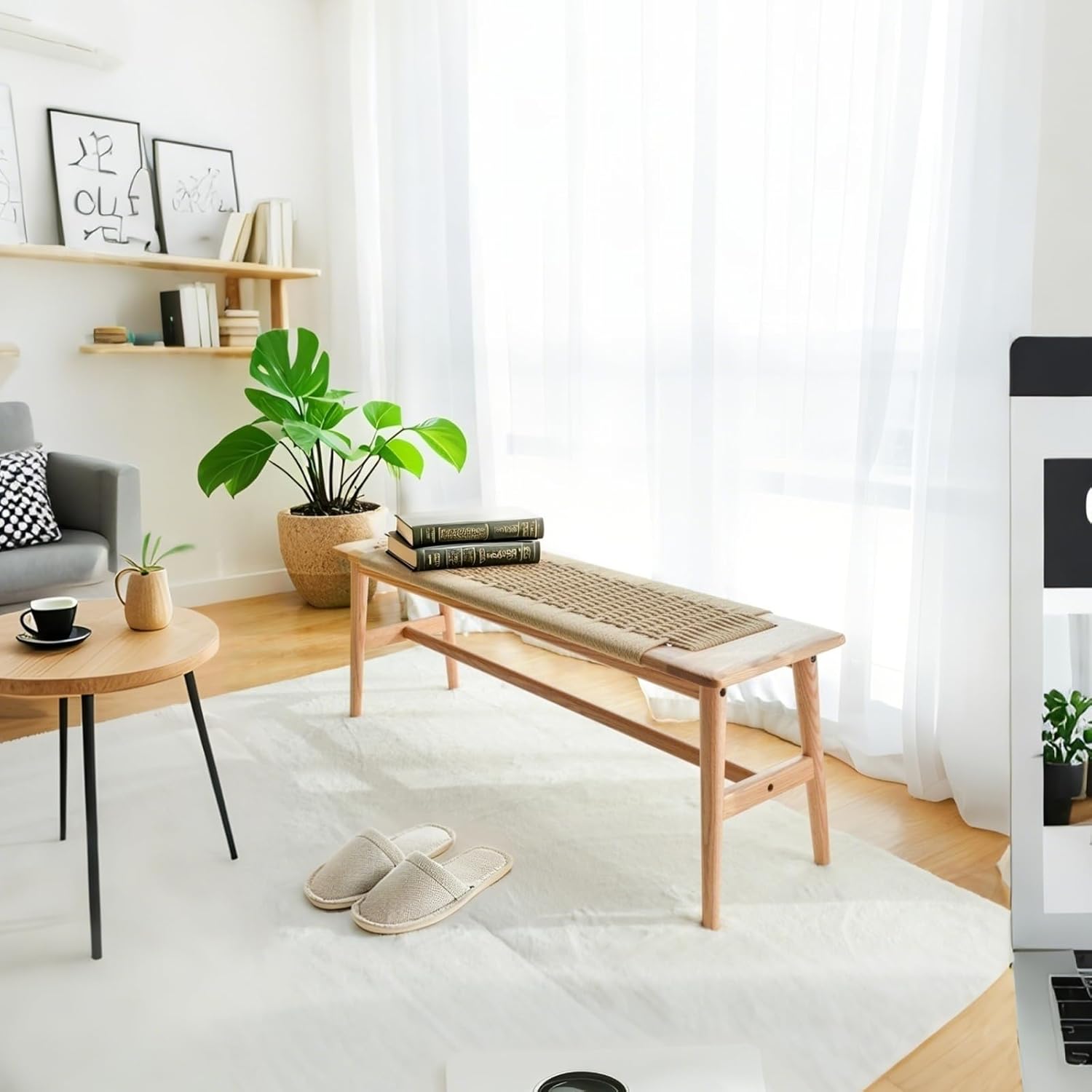 - Versatile Usage: With an elegant and modern design, the woven wooden bench can serves as an entryway bench for shoe changing, a dining bench for kitchen & dining room, an end-of-bed bench for added seating and storage space for bedroom, an ottoman bench for living room, a piano bench for your house, or a wooden bench for hallway or balcony