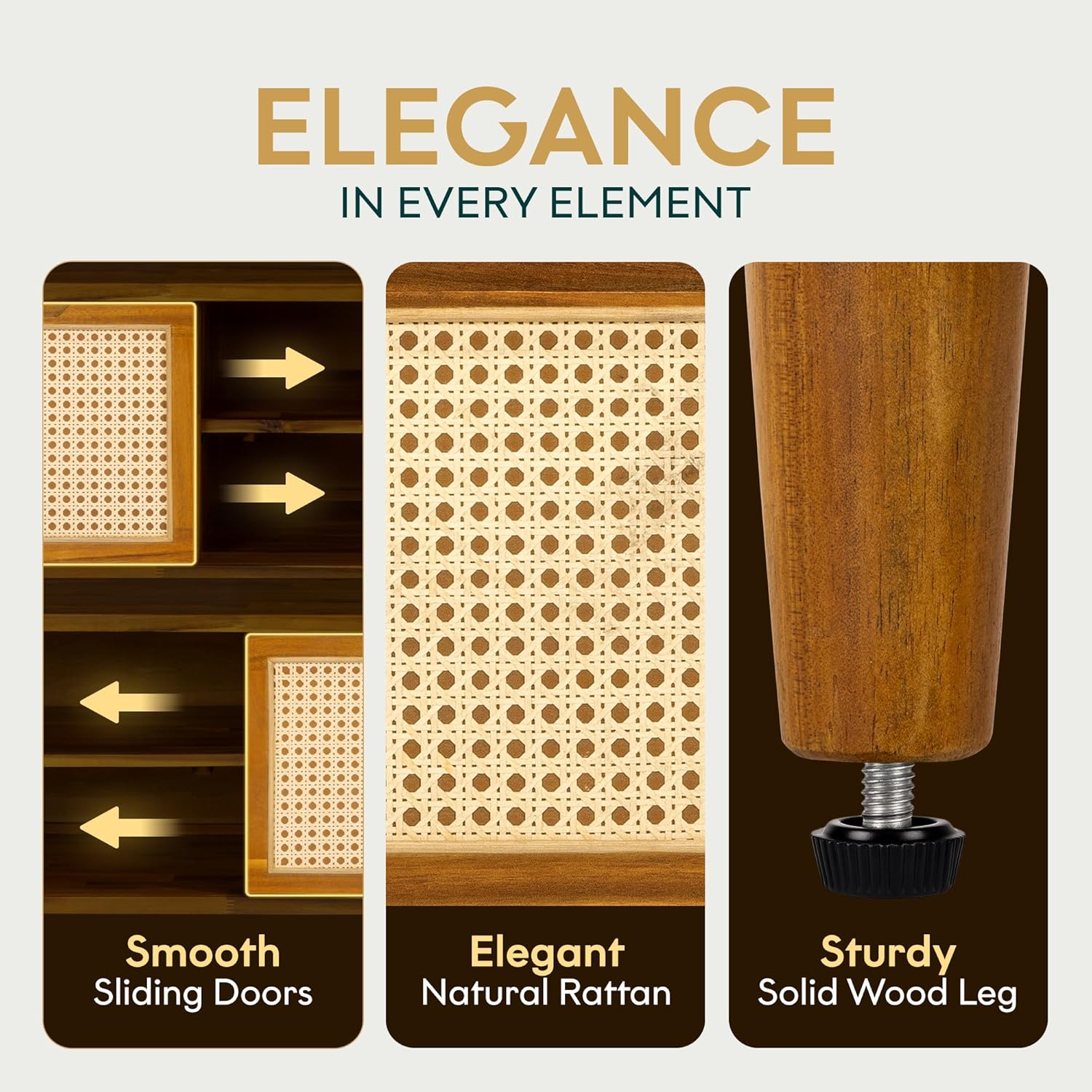 - TIMELESS MID-CENTURY MODERN DESIGN: Blends solid acacia wood with hand-woven natural rattan doors for a sophisticated and warm aesthetic.