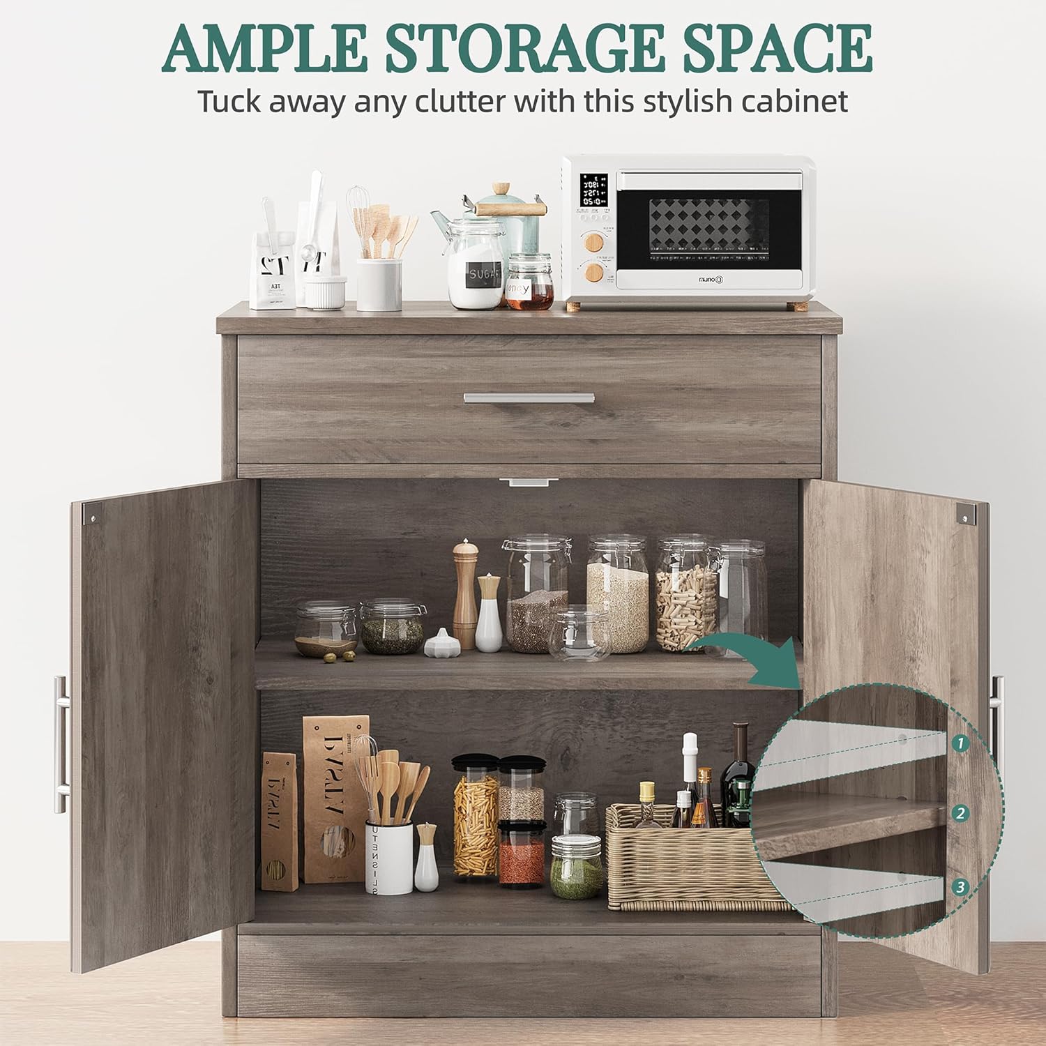 - Ample Storage Space: The kitchen storage cabinet features a large drawer and 2 doors cabinet with an adjustable shelf to meet your storage needs for coffee beans, seasoned, and some sundries, while the wide tabletop creates an accessible way to display microwave, toaster, and coffee makers.