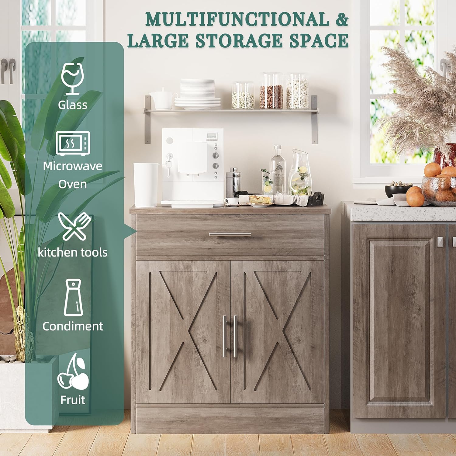 Shintenchi Farmhouse Storage Cabinets with Doors and Shelves,Kitchen Barn Door Storage Cabinet with Drawers,Coffee Bar Cabinet Buffest Sideboard for Dining Room,Living Room,Bathroom,Entryway,Ash Grey