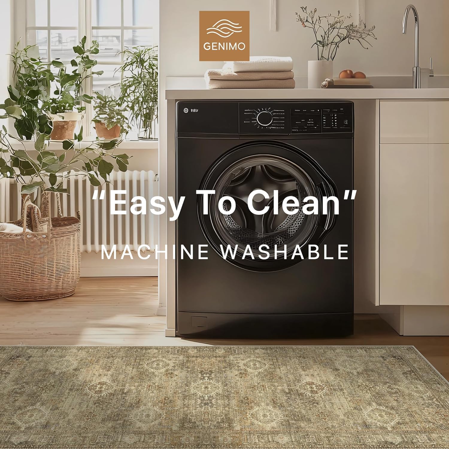GENIMO 2X5 Hallway Runner Rug, Machine Washable Non Slip Vintage Floral Patchwork Runners, Thin Low Pile Chenille Carpet Runners for Entryway, Kitchen, Bathroom, Bedroom, Straw