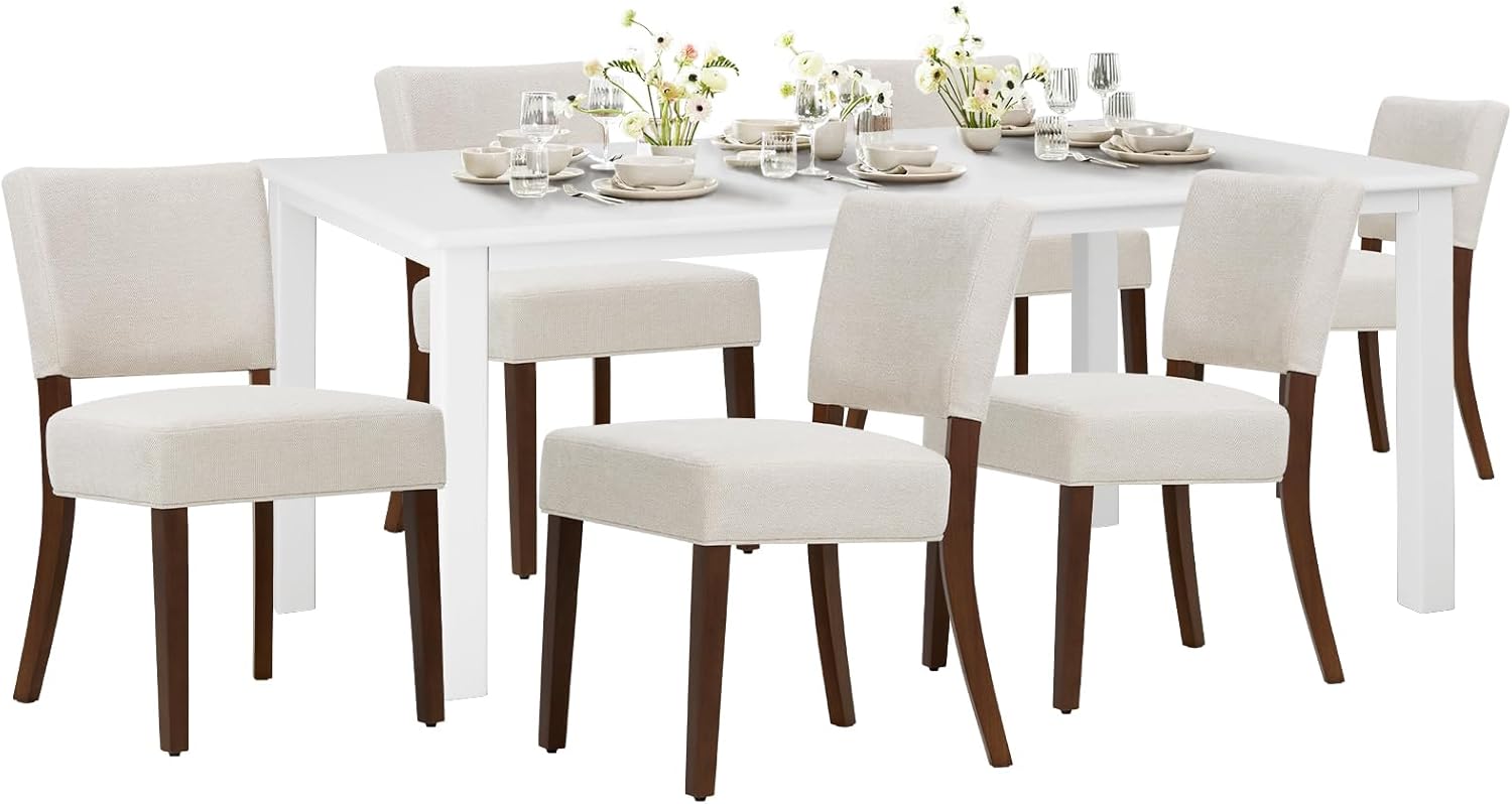 COLAMY 60 Inch Rectangular Kitchen Dining Table for 6, Modern Farmhouse Dining Table Set for 6, Wood Dining Table and Kitchen Dining Chairs for Dining Room, Restaurant, White/Beige