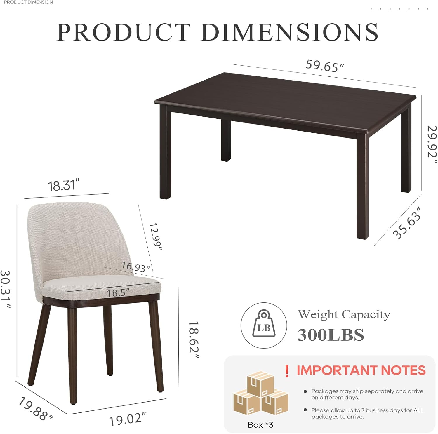 - DINING TABLE AND CHAIRS SET: Measuring 60" L x 36" W x 30" H, our rustic dining table can comfortably seat 4-6 people. Upholstered ergonomic dining chair make you comfortable and safe to sit on during meals or activities. It's ideal for family meals, casual dining, or intimate parties in a modern setting.