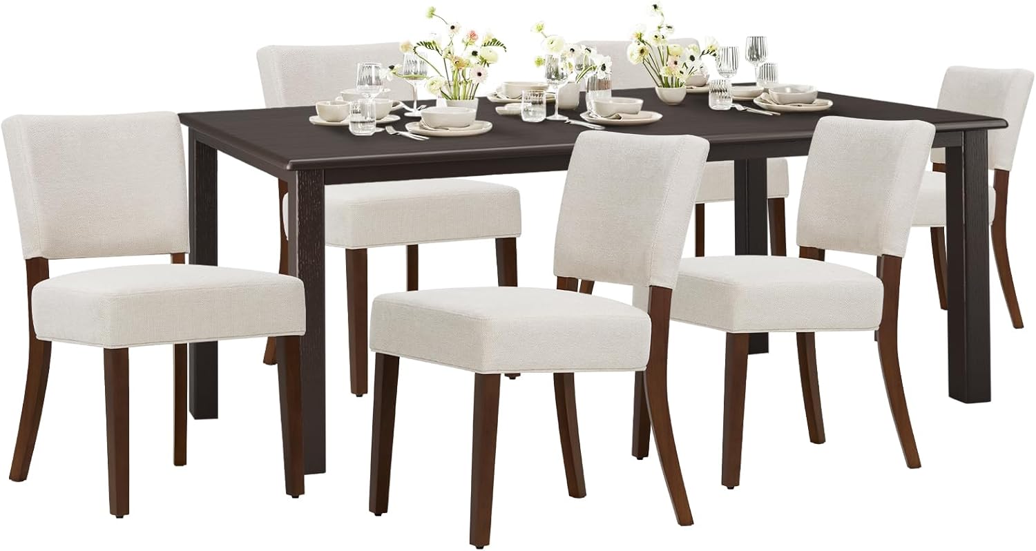 - DINING TABLE AND CHAIRS SET: Measuring 60" L x 36" W x 30" H, our rustic dining table can comfortably seat 4-6 people. Upholstered ergonomic dining chair make you comfortable and safe to sit on during meals or activities. It's ideal for family meals, casual dining, or intimate parties in a modern setting.