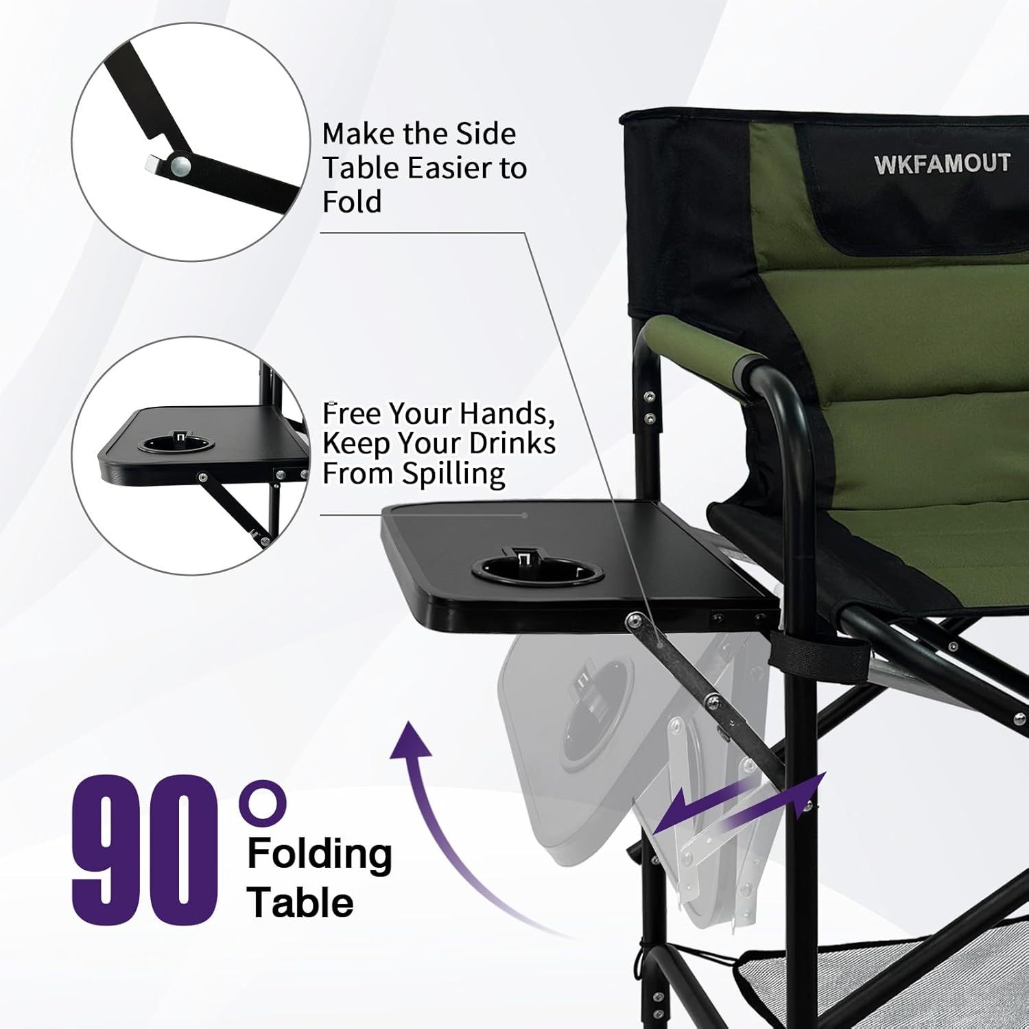 Tall Folding Directors Chair with Side Table 30.71" Seat Height Foldable Camping Chair Bar Stool for Makeup Artist Face Painting with Footrest and Storage Pocket Supports 350LBS