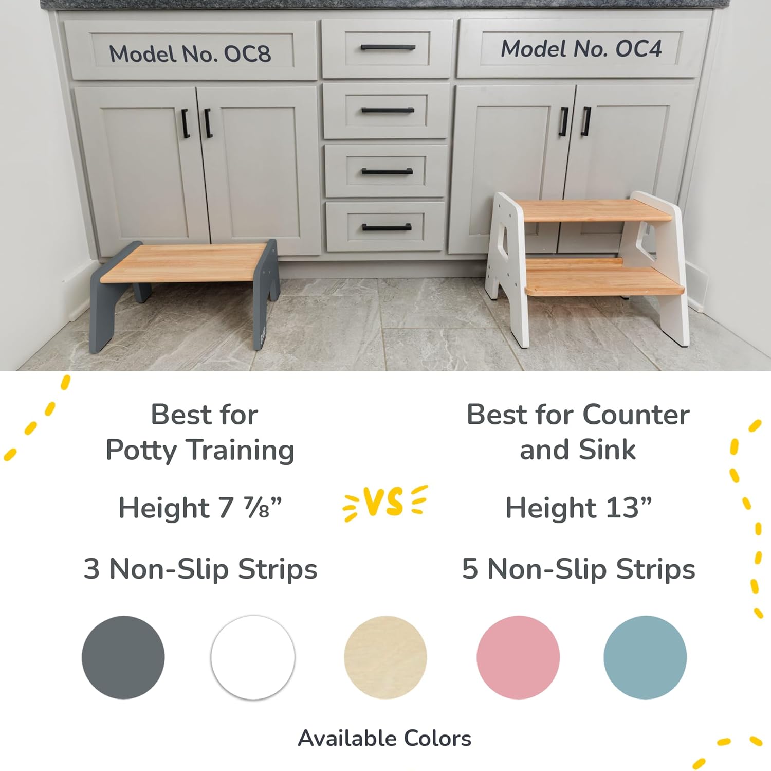- Water-Resistant for Bathroom Use - Sealed wood surfaces and non-slip strips resist moisture and splashes, making this a reliable toddler stool for bathroom routines like hand washing or teeth brushing at the bathroom sink.