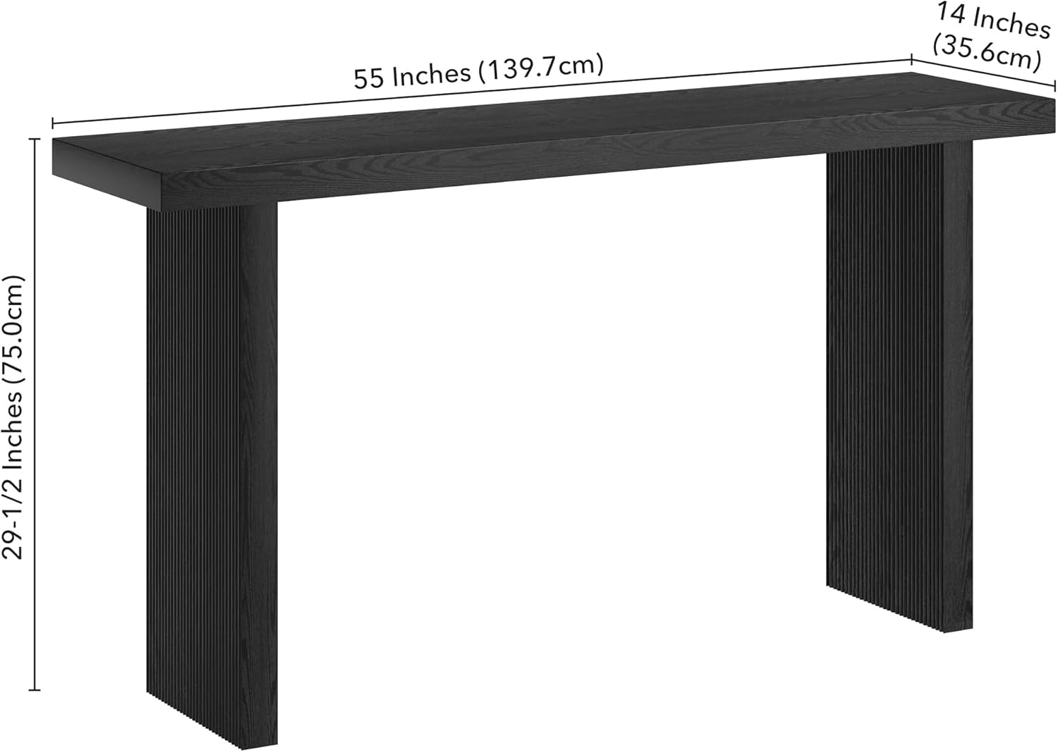 Henn&Hart 55'' Wooden Rectangular Fluted Console Table Entryway Table, Sofa Table for Entryway, Living Room, Couch, Hallway, or Office, Black Grain