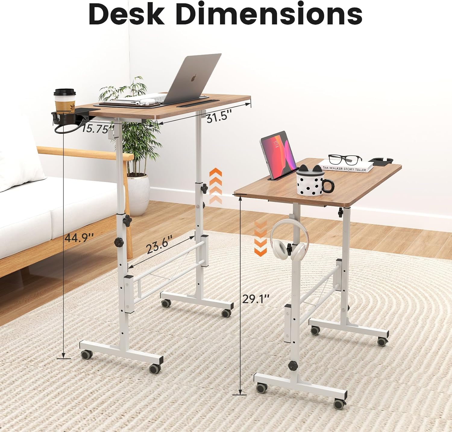 Hadulcet Portable Standing Desk, Rolling Desk Adjustable Height, Mobile Laptop Desk, Small Stand Up Table with Wheels, Walking Table for Treadmill Walking Pad, Tall Computer Stand, Oak