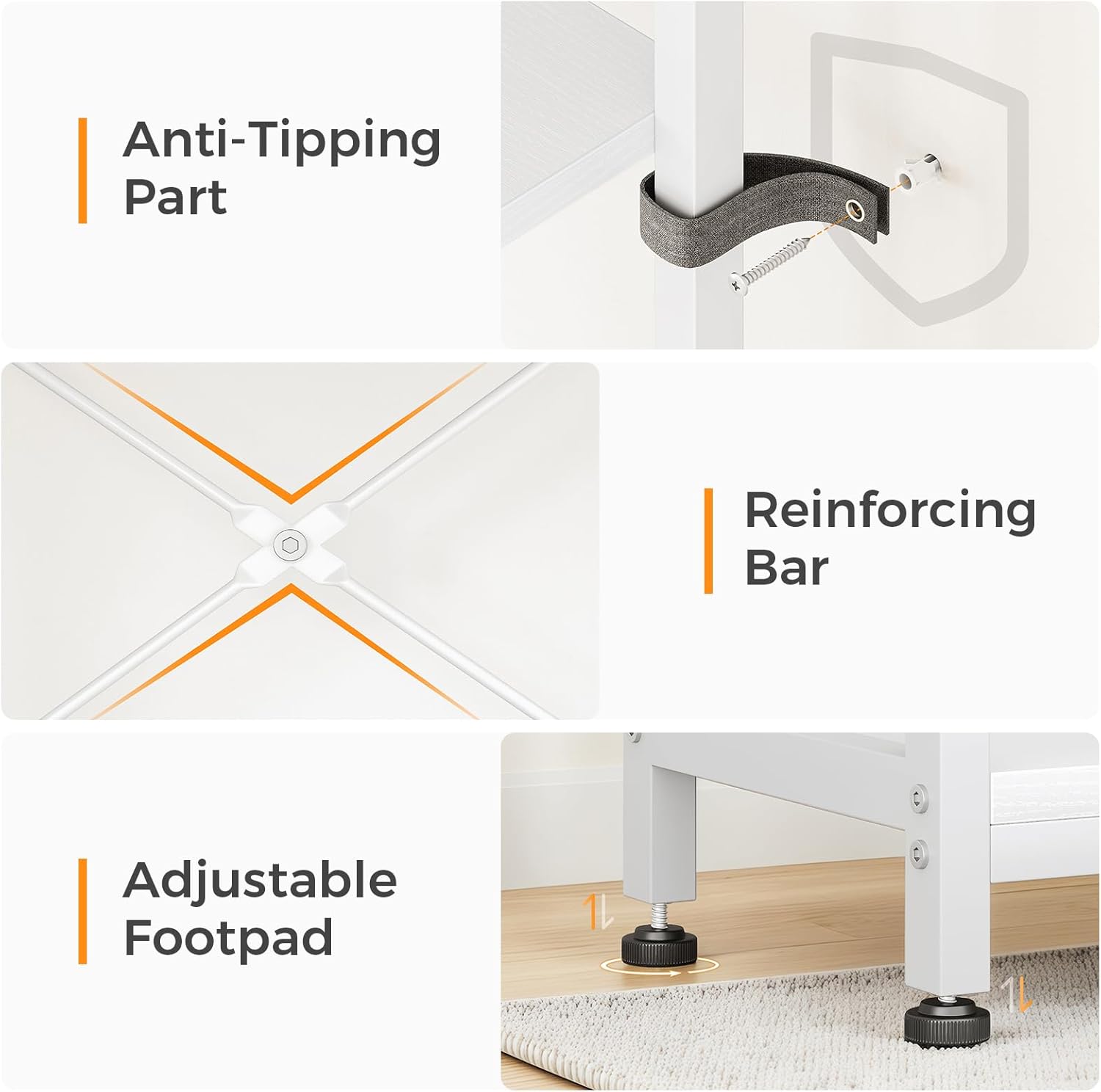 - ăAnti-Tip Safety & Premium Buildă Constructed with a robust steel frame and high-density particle boards, this bookshelf guarantees long-lasting durability. An anti-toppling kit and height-adjustable foot pads provide enhanced stability on uneven surfaces, while protect your floors. Built to withstand daily use, it combines safety with industrial-strength reliability.