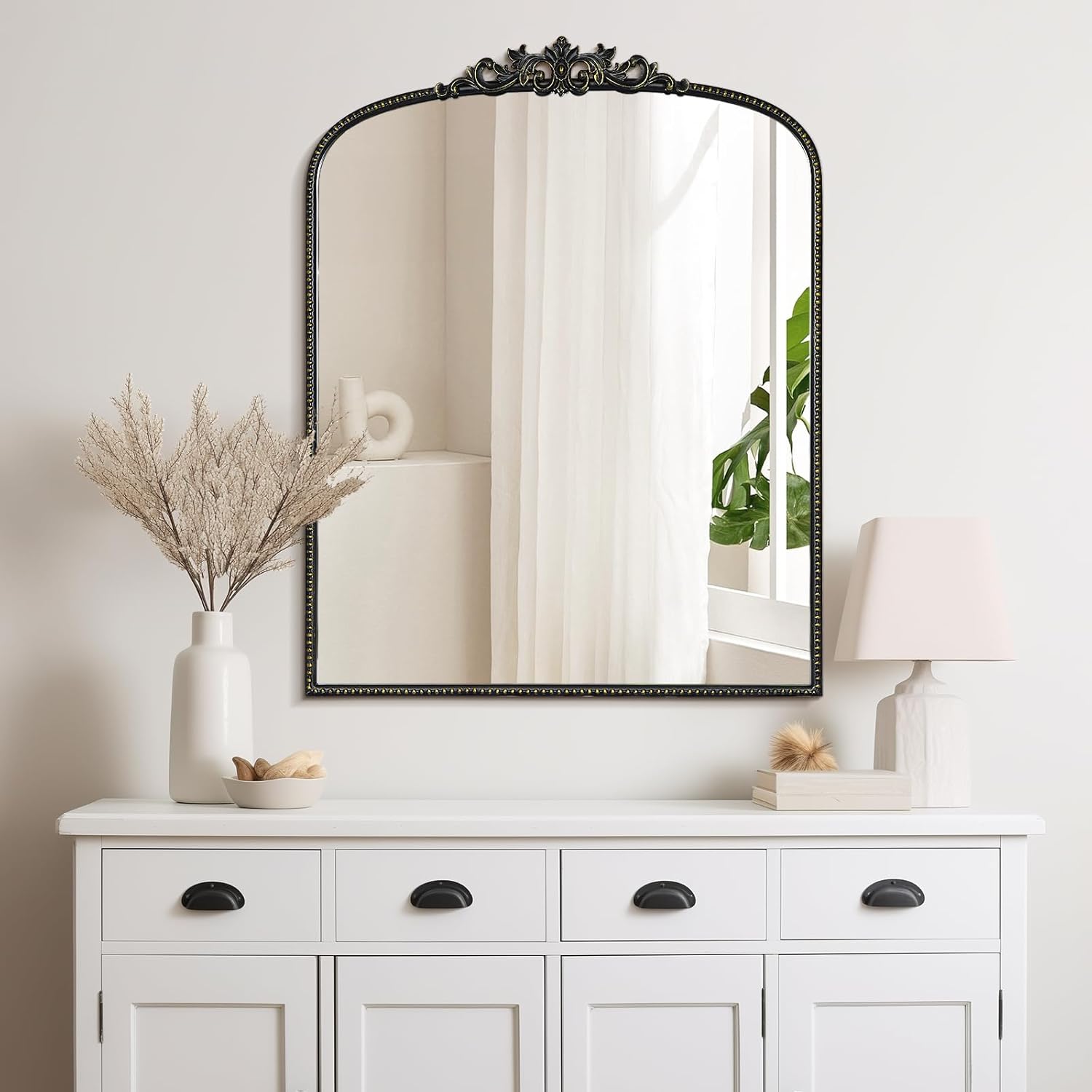 - Unique Design: This black vintage mirror features an arched silhouette with intricate unique flower patterns, adding vintage charm to any interior. Its ornate design makes it a striking centerpiece in living rooms, hallways, or bedrooms.