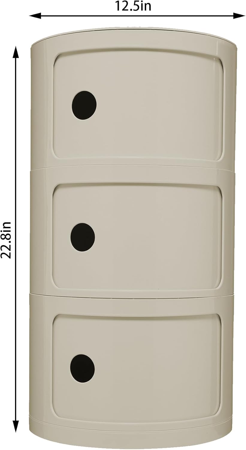 3 Tier Round with Storage, Modern Style Side Table, Multifunctional End Table Storage Cabinet for Living Room, Bedroom, Bathroom (Beige)