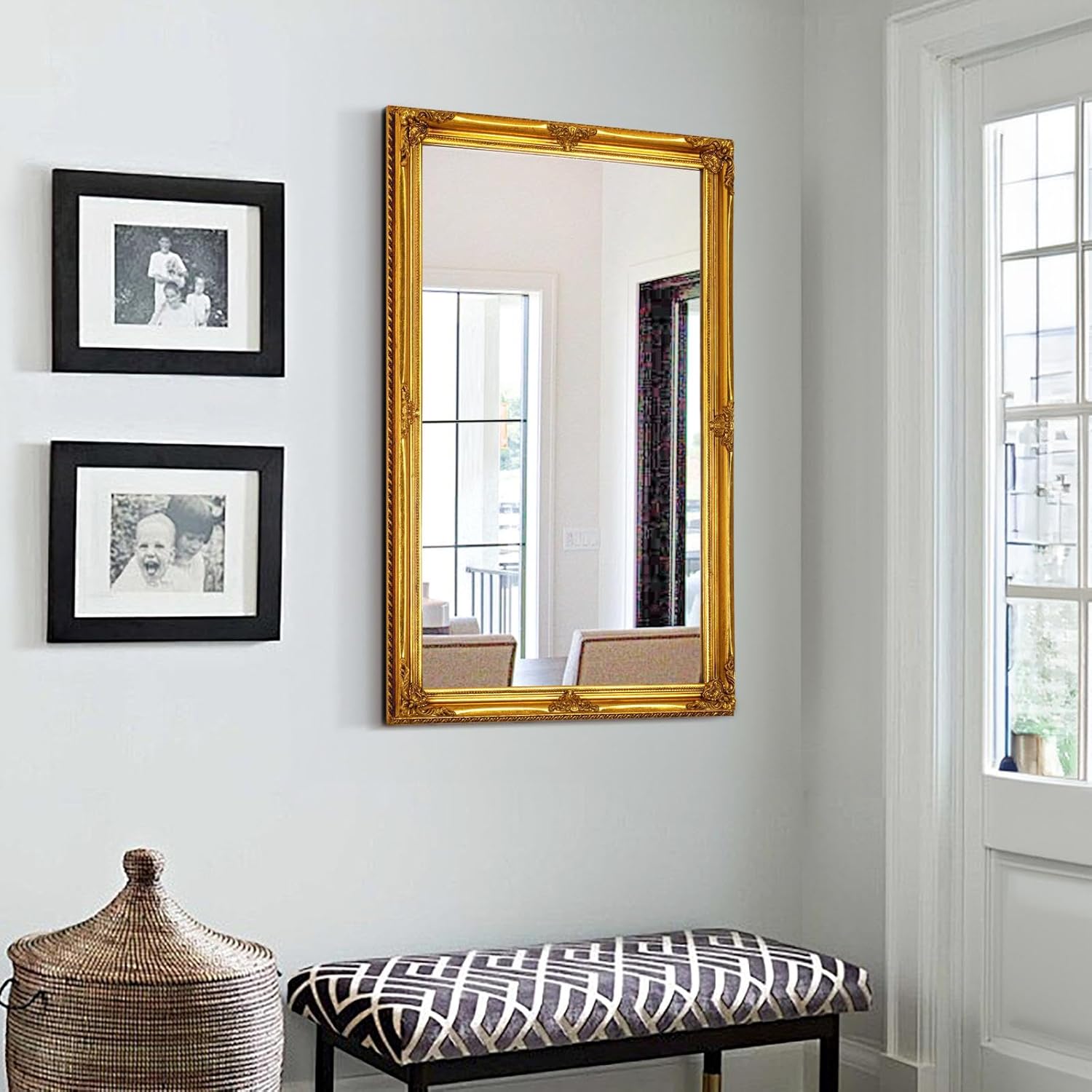 39" x 27" Large Vintage Mirror Wall Decor, Gold Ornate Decorative Wall Mirror with Elegant Victorian Wood Frame for Living Room Fireplace, Dining Room, Bathroom