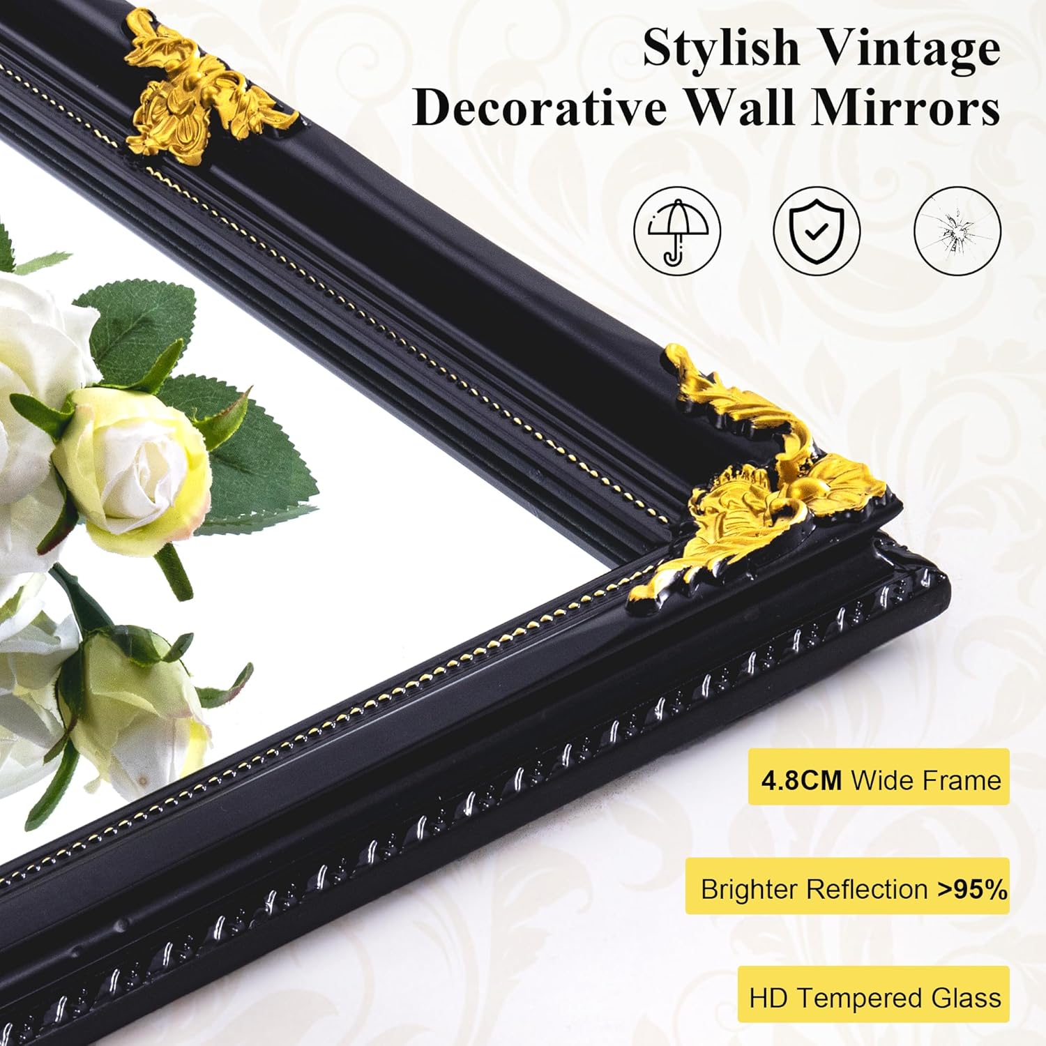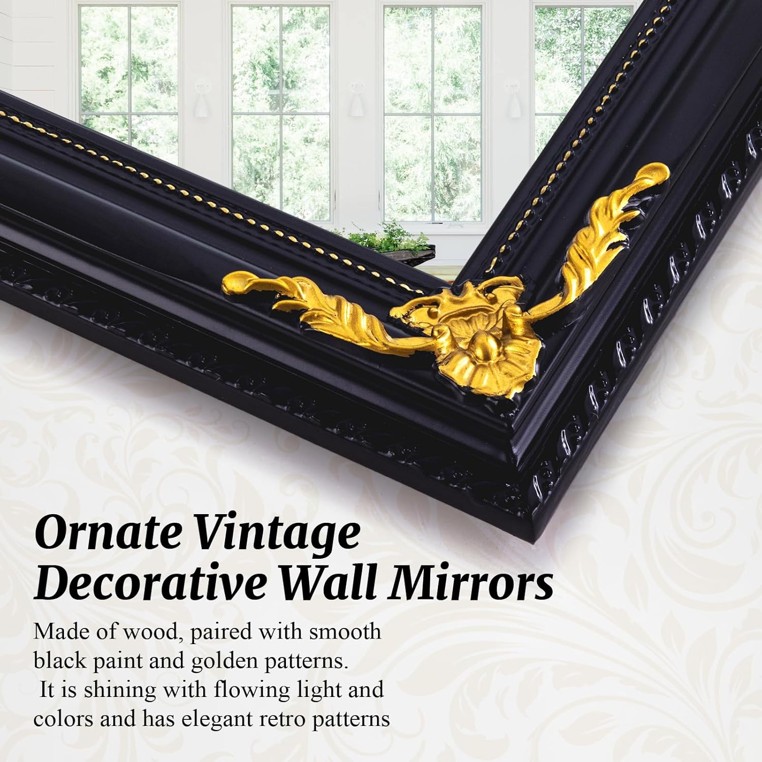39" x 27" Large Vintage Decoration Mirror, Dark Antique Mirror Wall Decor for Living Room Fireplace, Black and Gold Victorian Wood Frame Glass Wall Decor for Bathroom