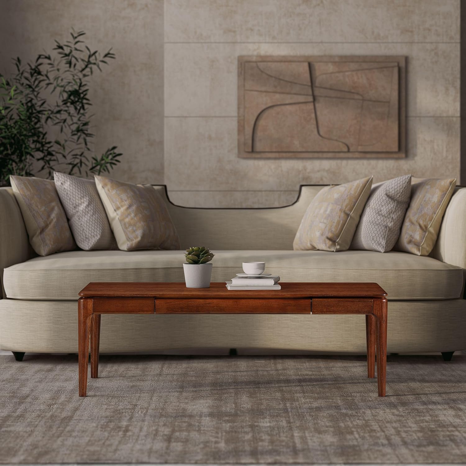 Mingle Modern Wooden Rectangle Coffee Table with Hidden Drawer – Waterproof & Heat Resistant, Dark Walnut