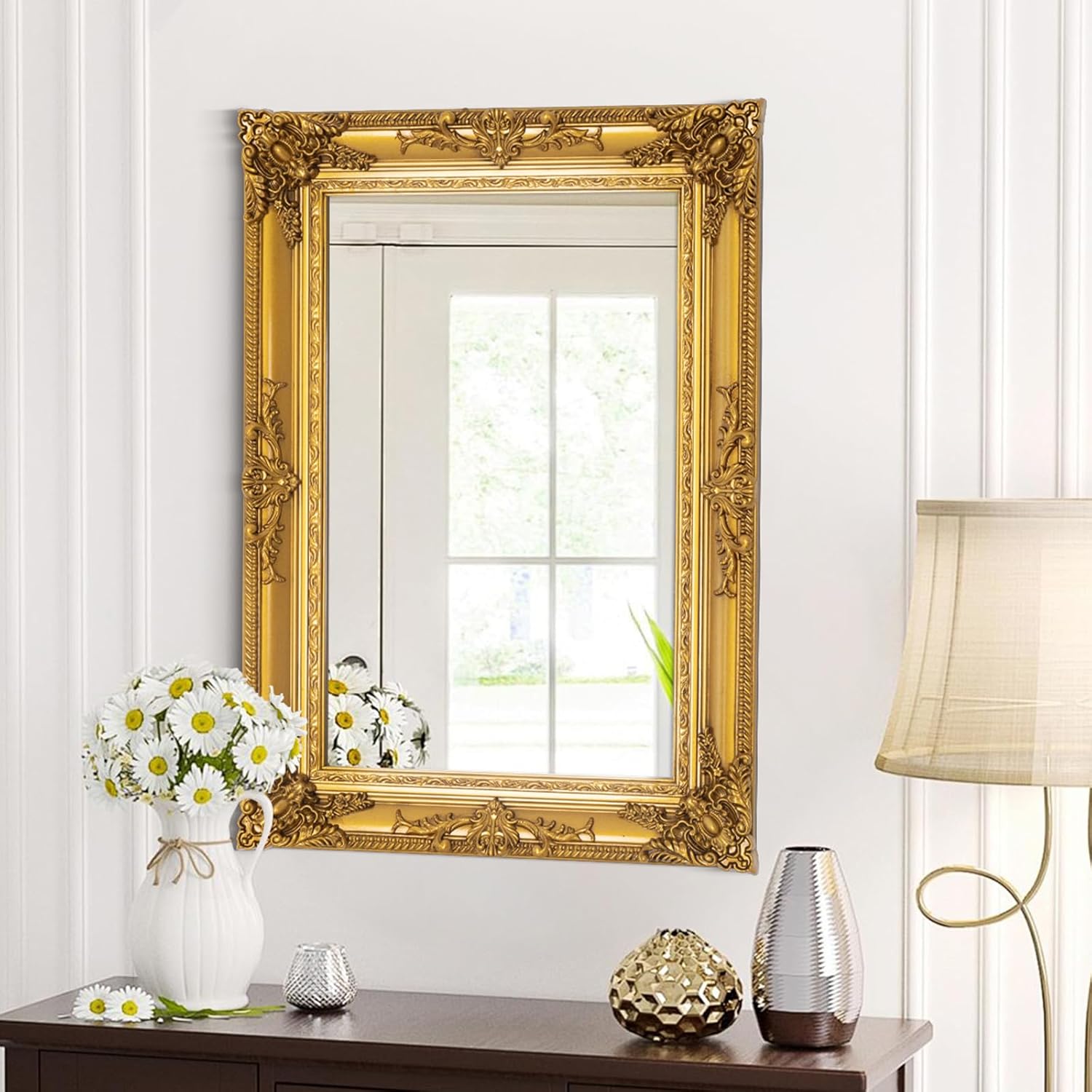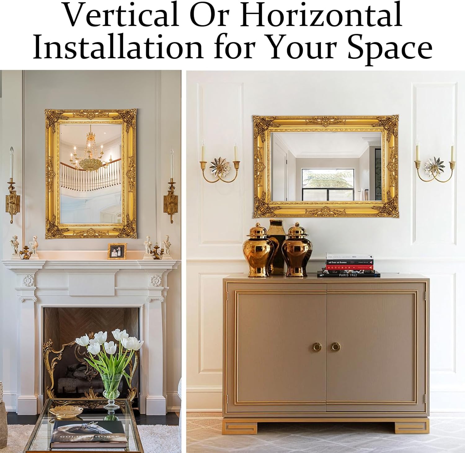 - High-definition Tempered Glass: This Baroque mirror is made with premium-grade tempered glass, ensuring superior clarity and durability. It provides a clear and distortion-free reflection, allowing you to admire your home decor reflection with utmost precision