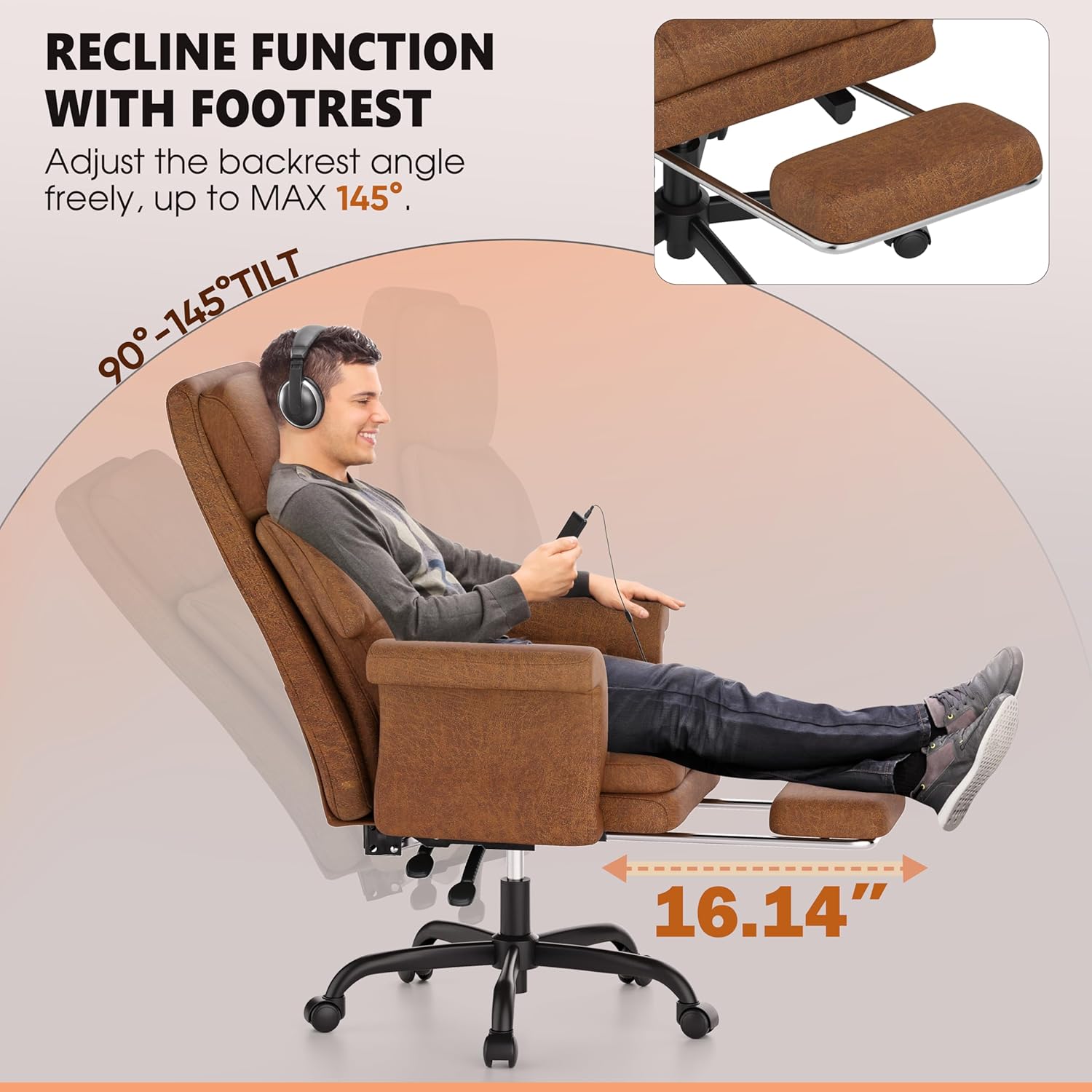 - LUXURIOUS RETRO COMFORT: Sink into premium, easy-to-clean luxurious faux suede and velvety-soft feel. The dual-layer spring cushion and adjustable lumbar pillow provide exceptional, all-day support for your back and posture.