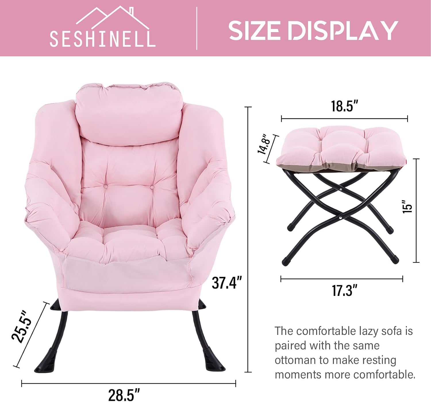 - LAZY CHAIR WITH OTTOMAN: The comfy lazy chair comes with a versatile folding footstool. You can also put the footstool next to the sofa and coffee table in the living room as a footstool to relax your feet, or even put it in the hallway or doorway and sit on a small stool to change your shoes.